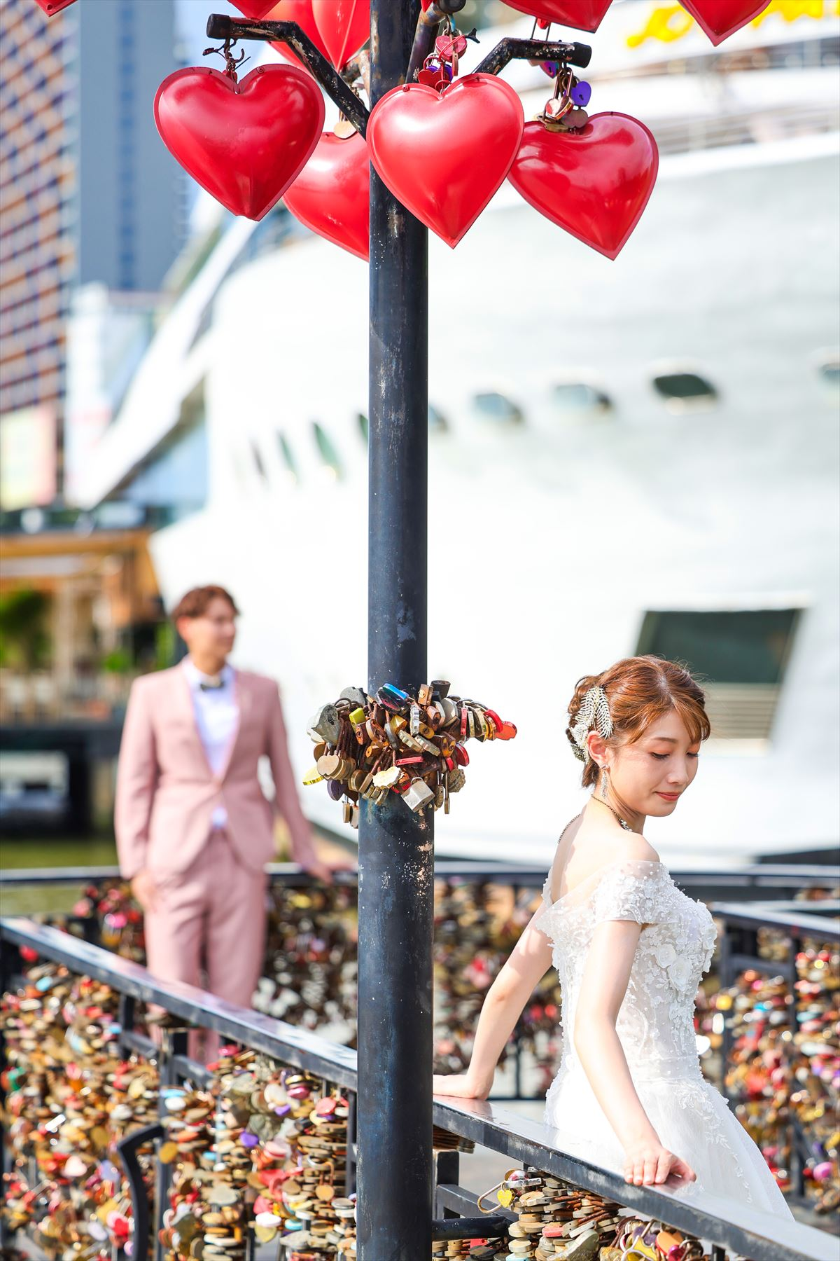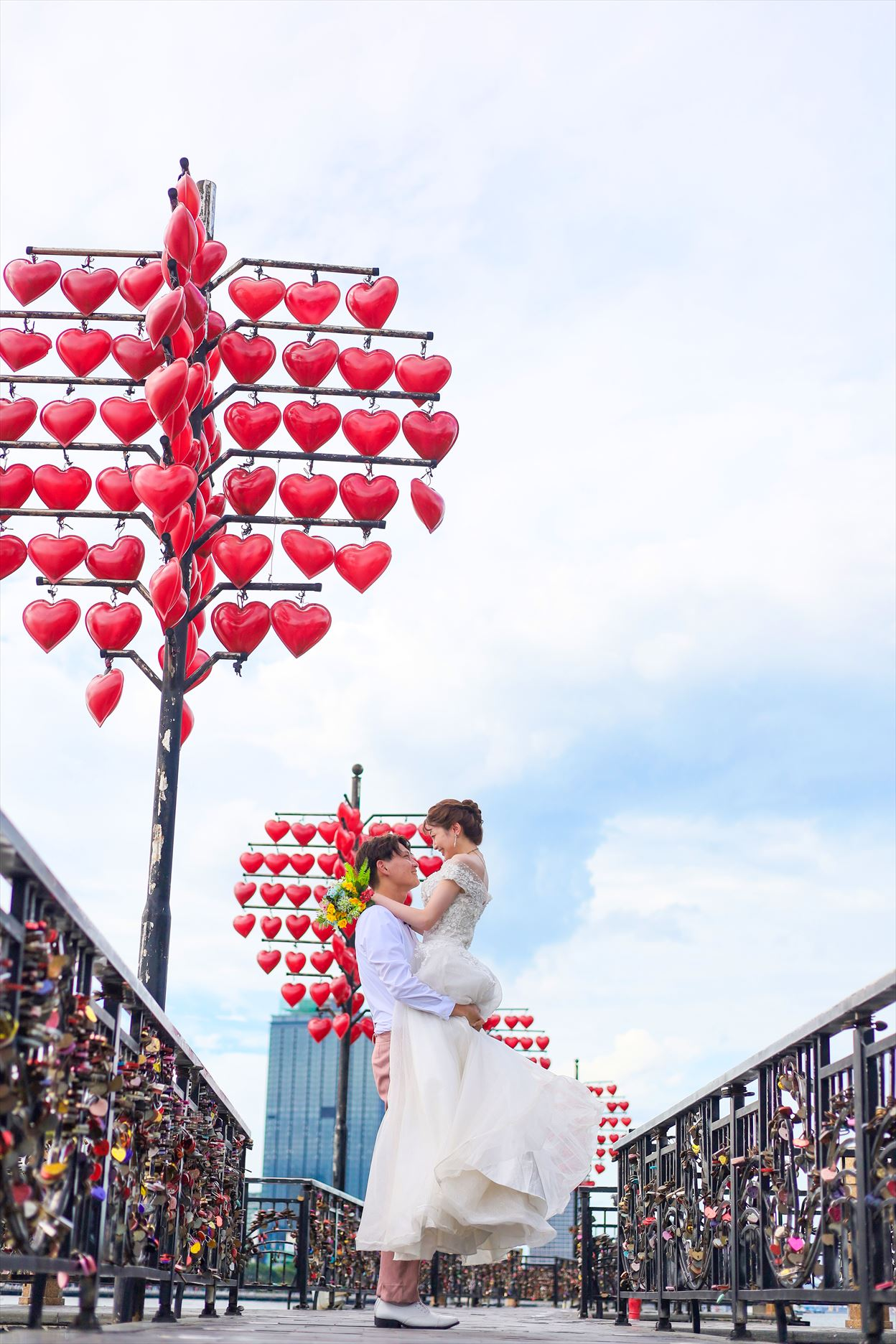 赤いハートがたくさんあり、ラブラブなお二人にぴったりですね!お洒落なお二人との撮影はとても楽しかったです!暑い中頑張ってくださり、いい写真がたくさん撮れて、テンション上がりました☆