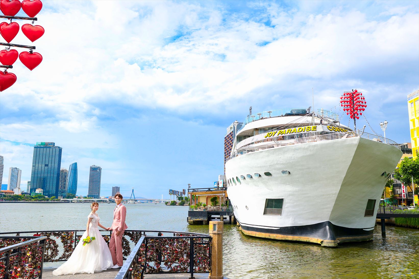 ダナンでのフォトウェディング。ホテルの敷地内、ビーチ、ダナン市内のマリーナにて撮影を行いました。