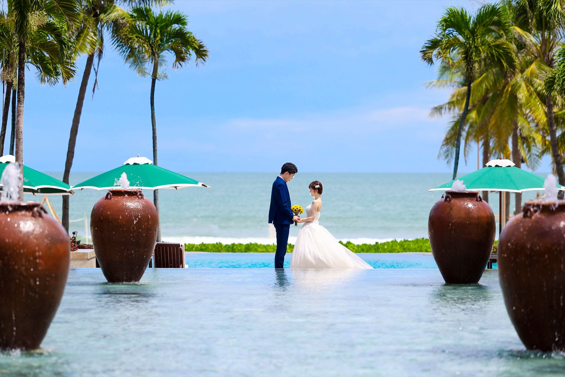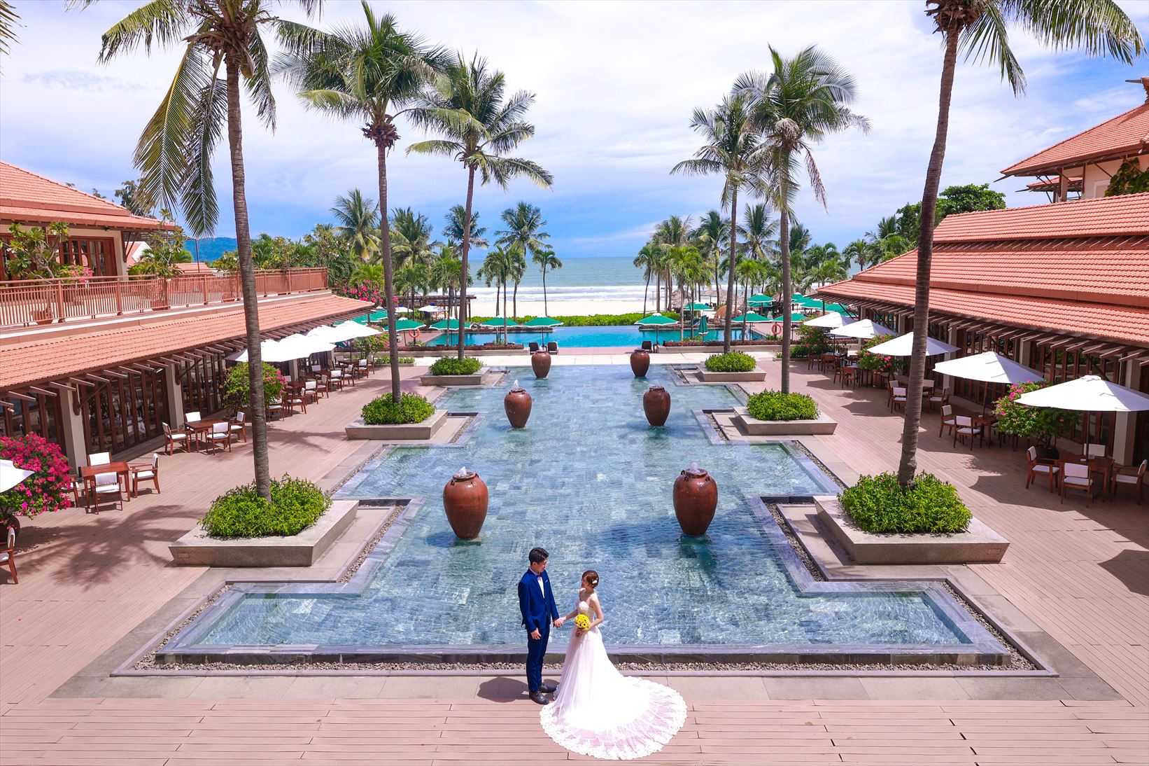 ダナンには撮影可能なホテルが複数ありますが、こちらはベトナム初の五つ星ホテルであるフラマ・リゾートでのウェディングフォト。
