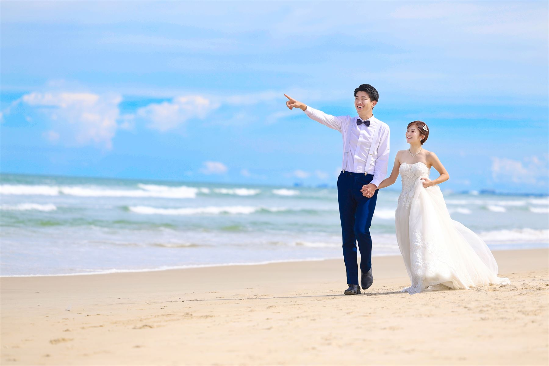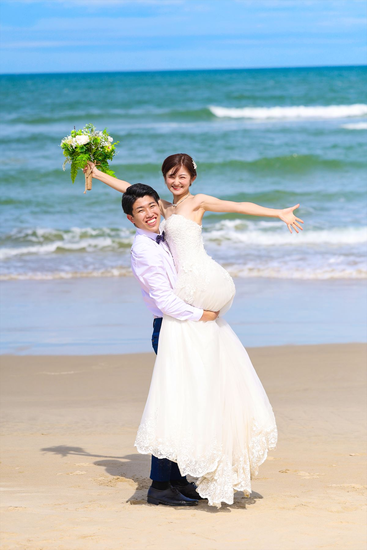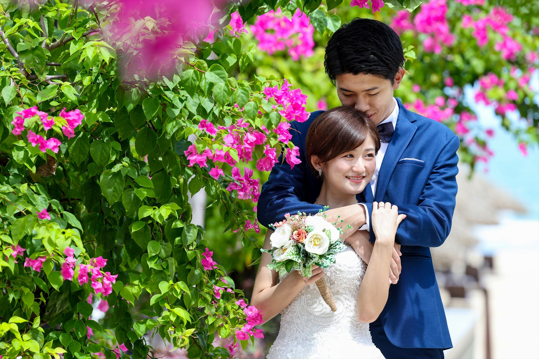 明るく素敵なお二人の笑顔が溢れていますね!晴れた暑い中でしたが、お二人の愛の方がアツアツで、とってもテンション上がる撮影でした☆