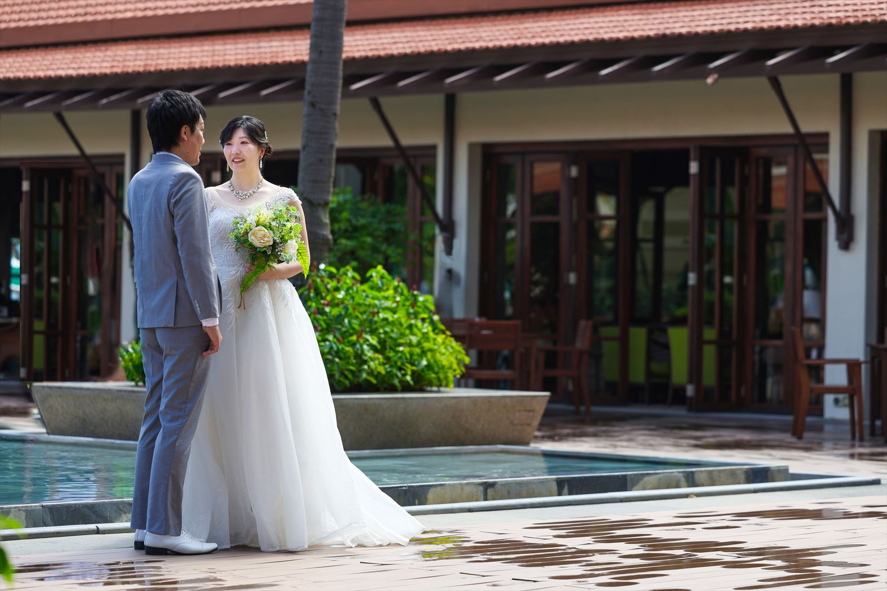 フラマ・リゾートの敷地内とホイアン旧市街地にてフォトウェディングの撮影をしました。2か所での撮影でしたが、移動中にたくさんお話しさせていただき、とても楽しかったです!