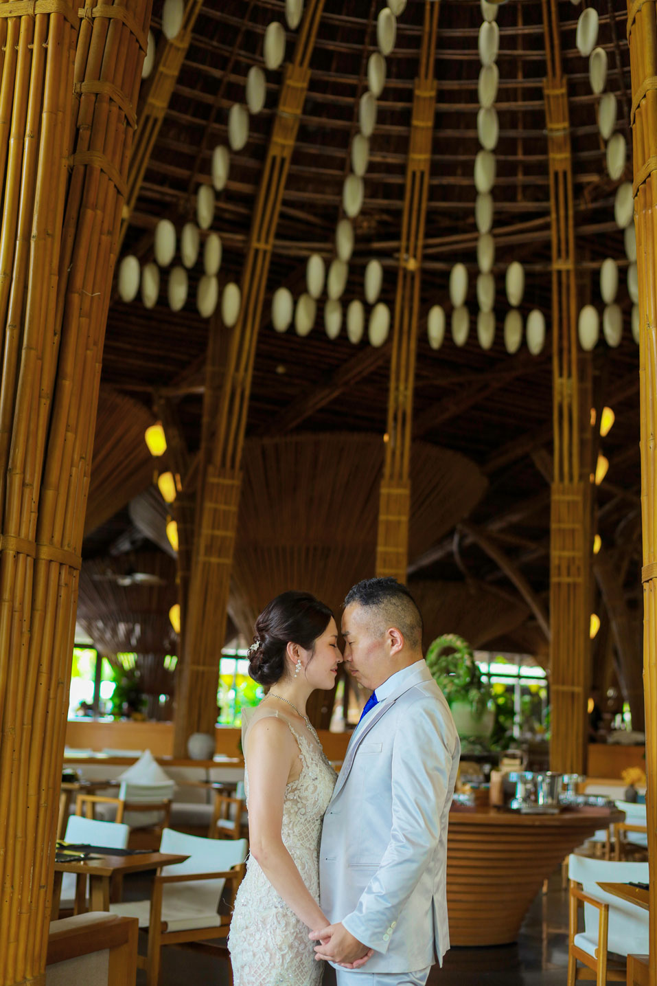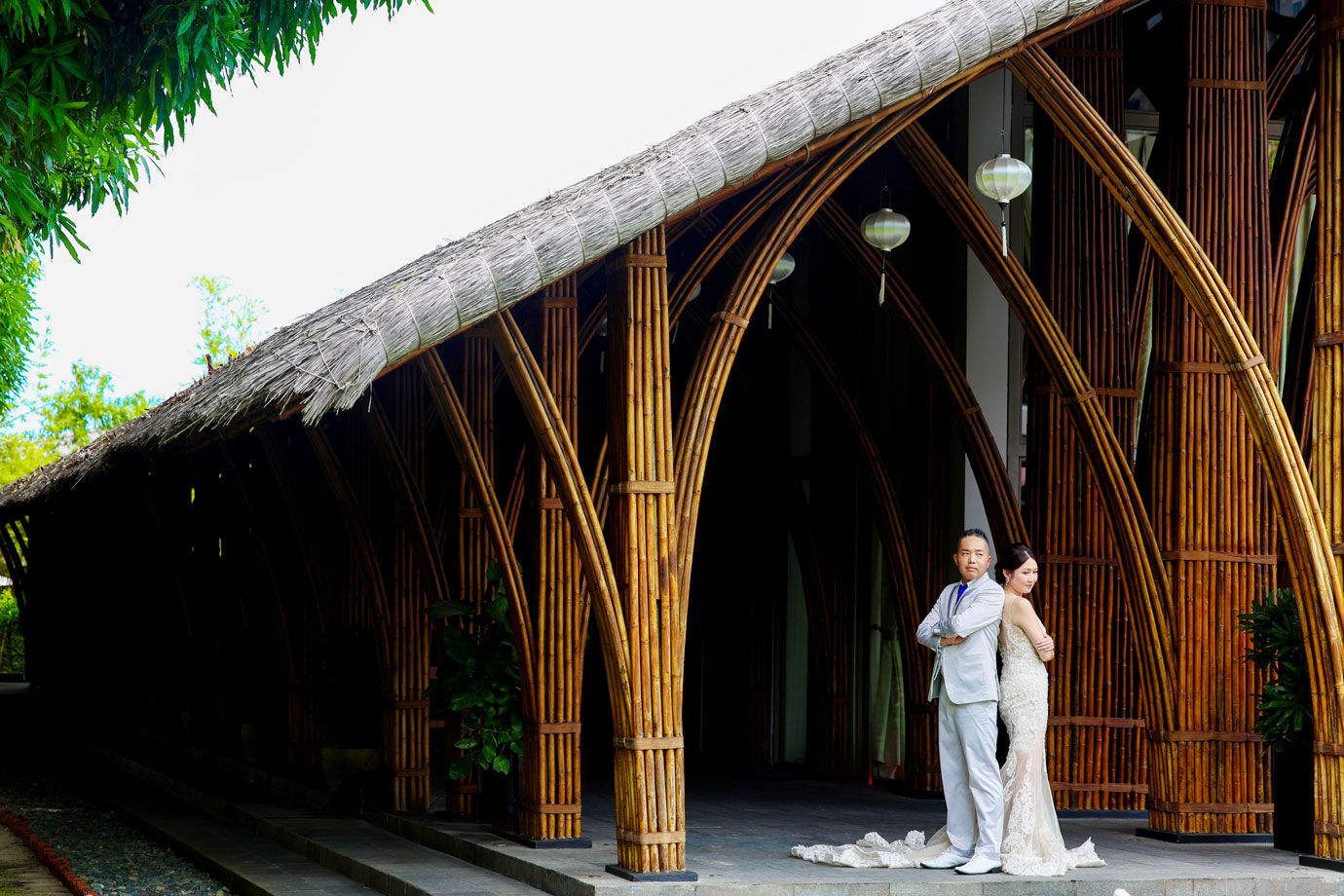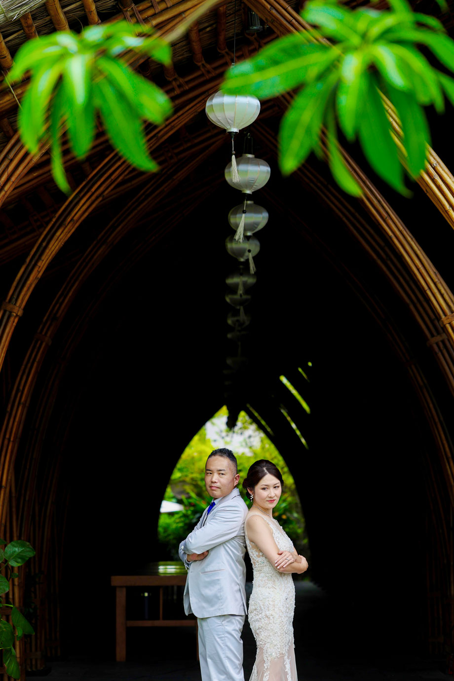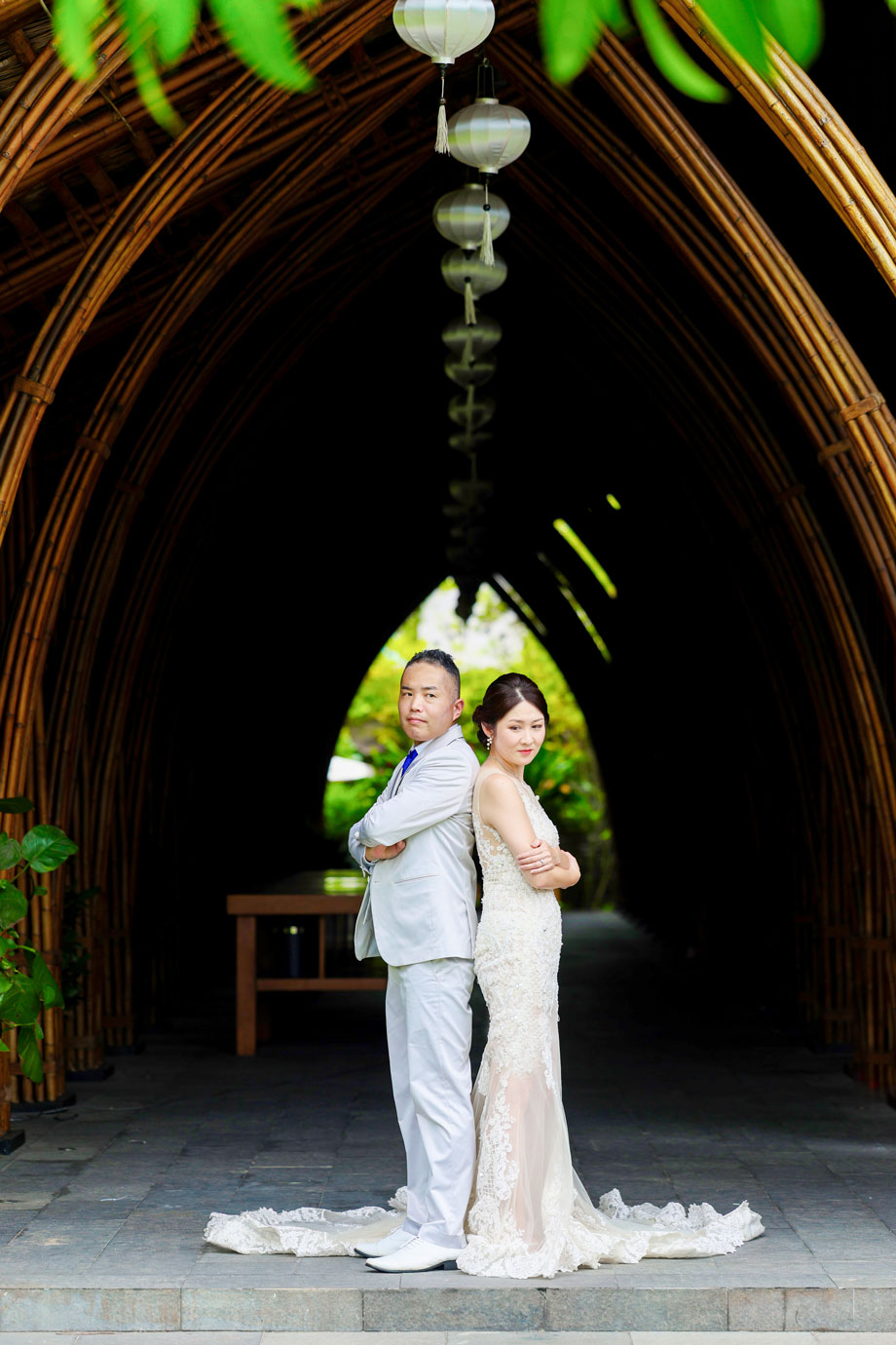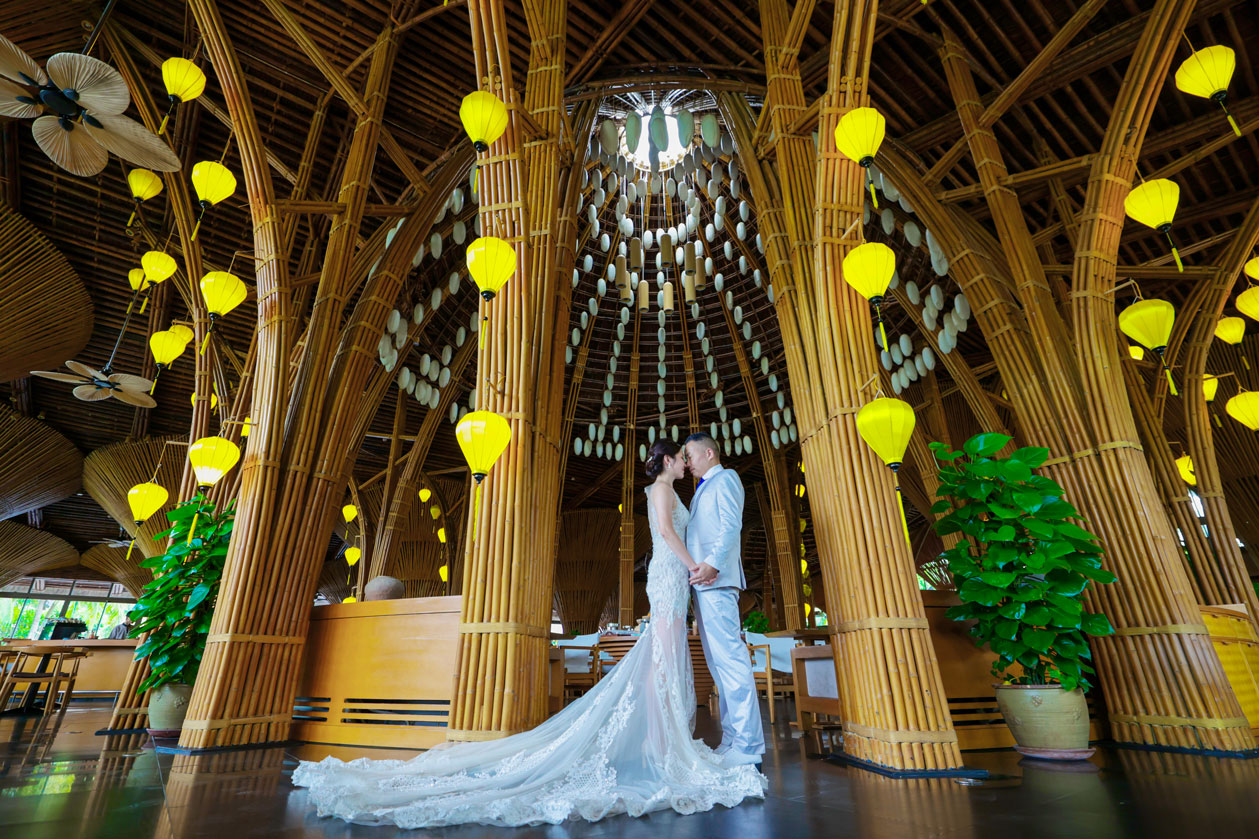 世界的に有名な竹の建築が美しいナマンは、ダナンでも特に人気のリゾートですが、そのダイナミックな空間にお二人の凛とした佇まいが重なり、唯一無二のカットがたくさん生まれました。