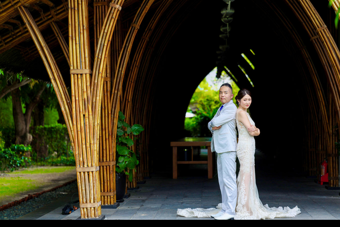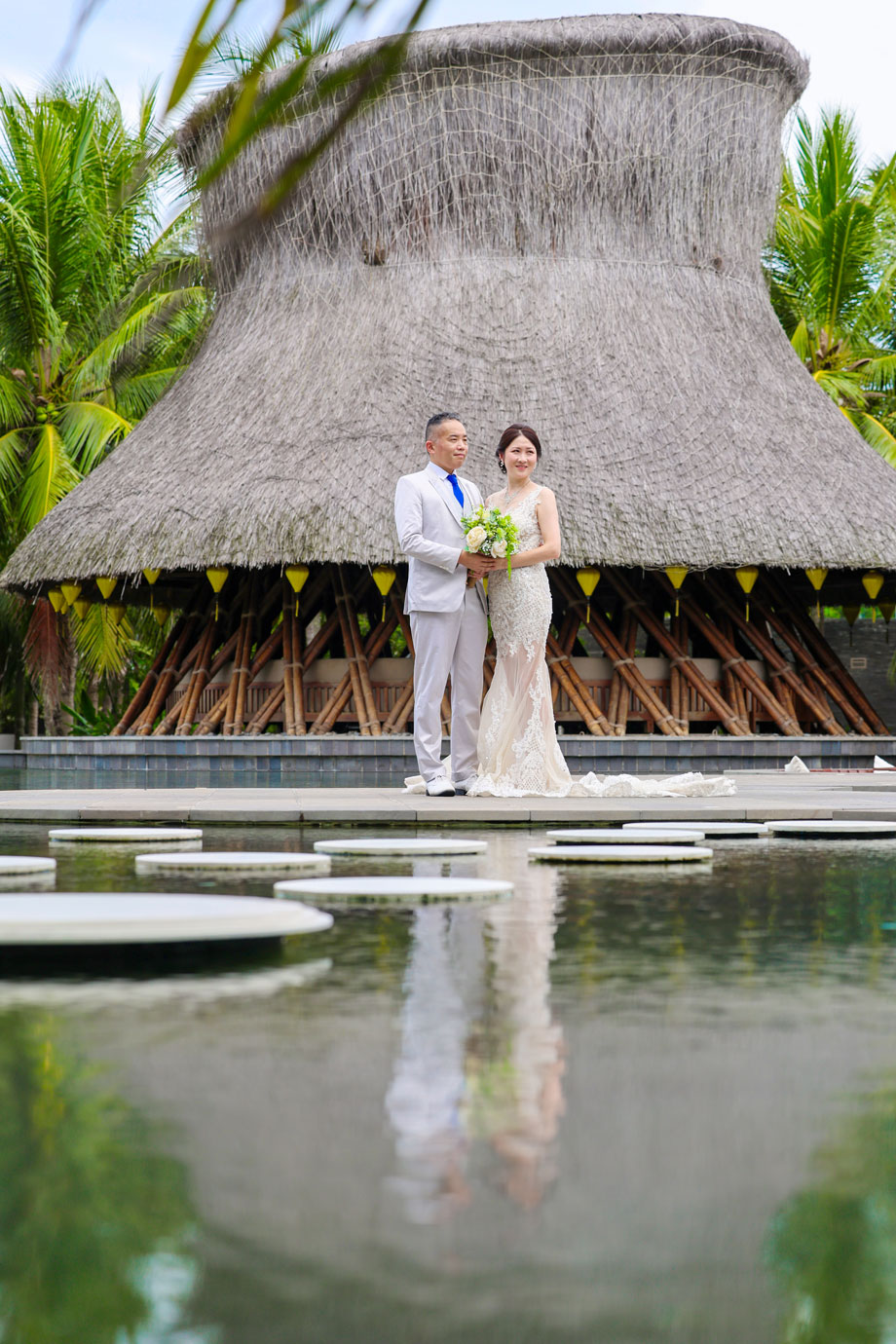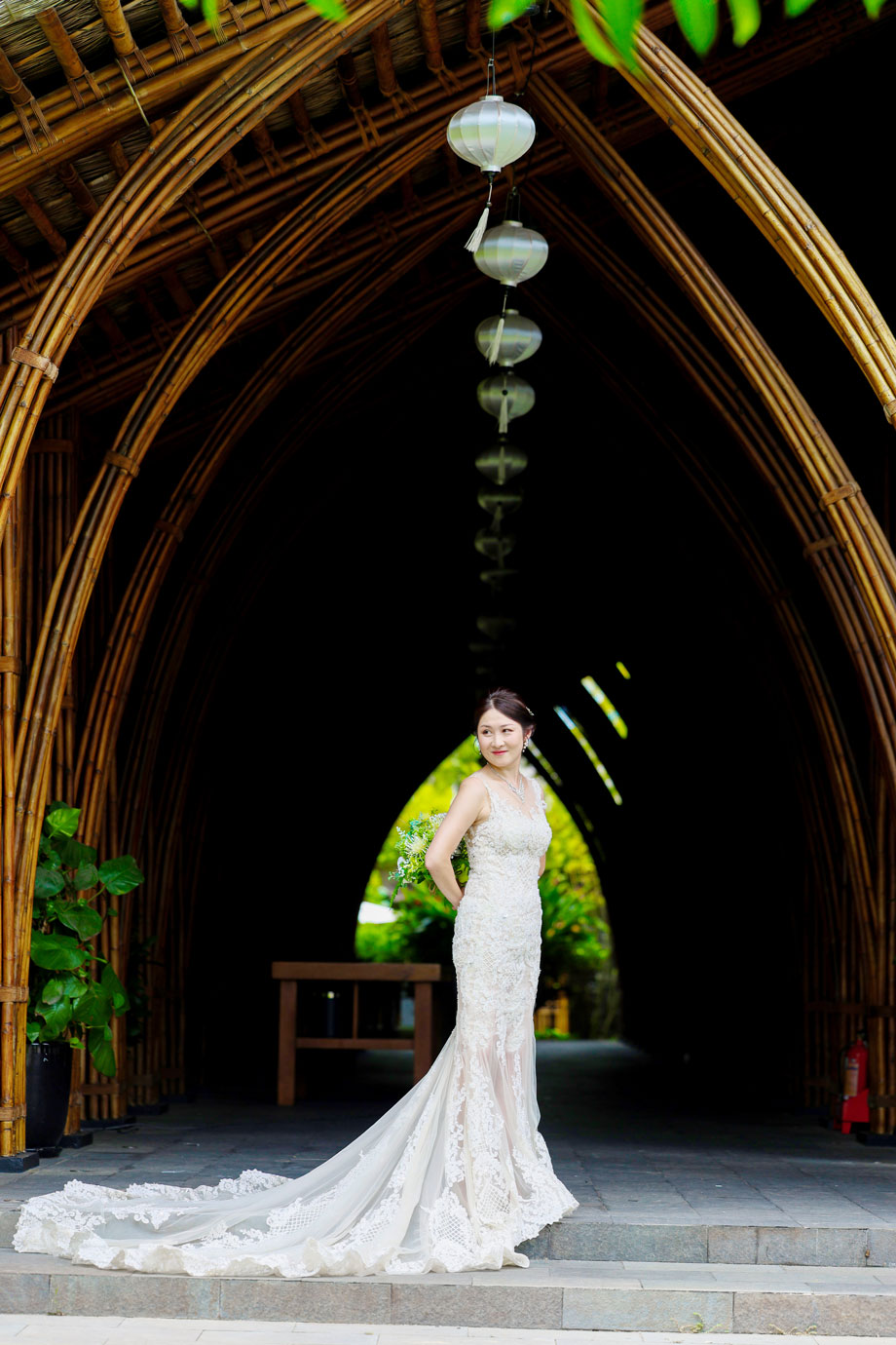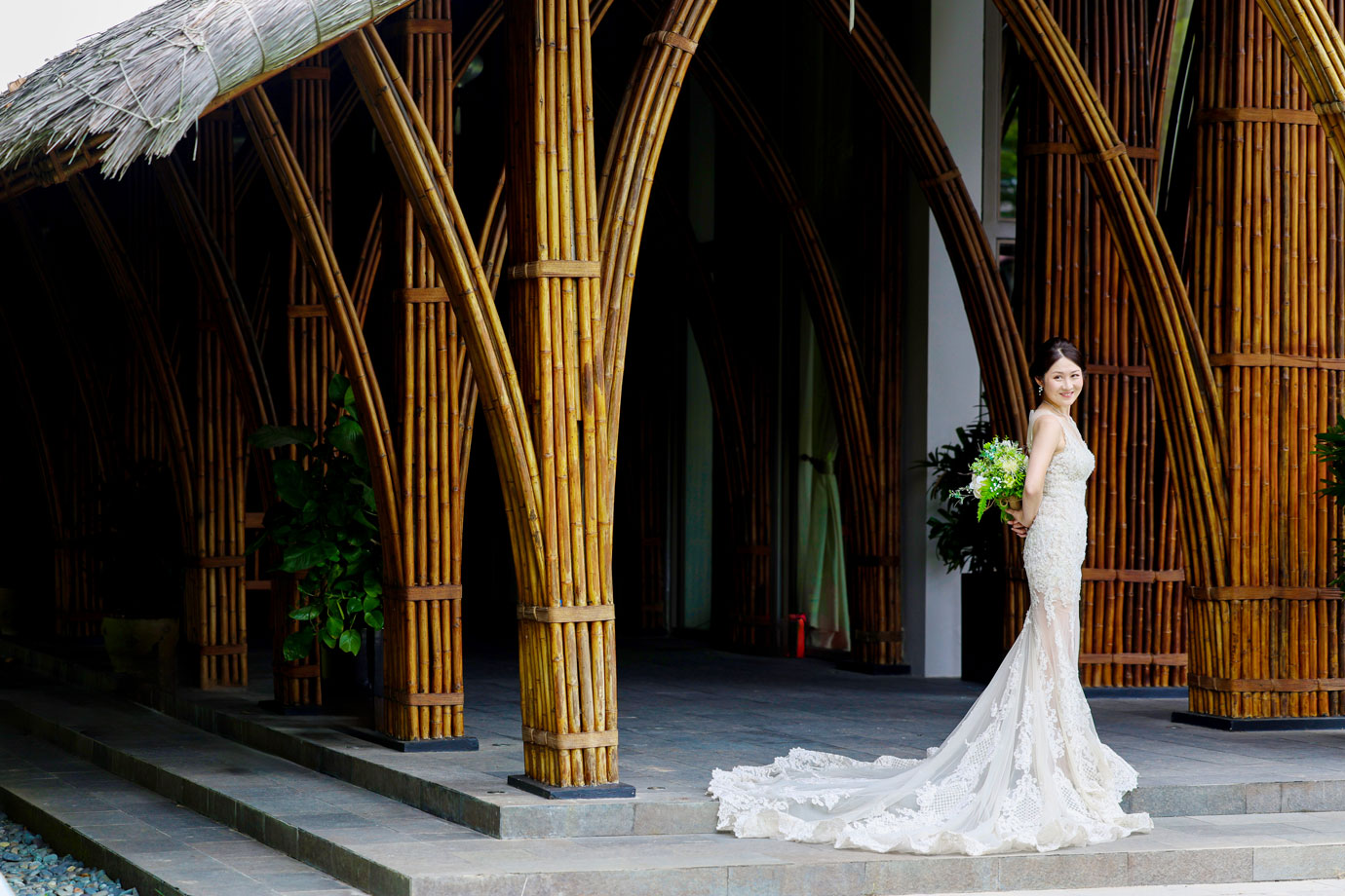 世界的に有名な竹の建築が美しいナマンは、ダナンでも特に人気のリゾートですが、そのダイナミックな空間にお二人の凛とした佇まいが重なり、唯一無二のカットがたくさん生まれました。