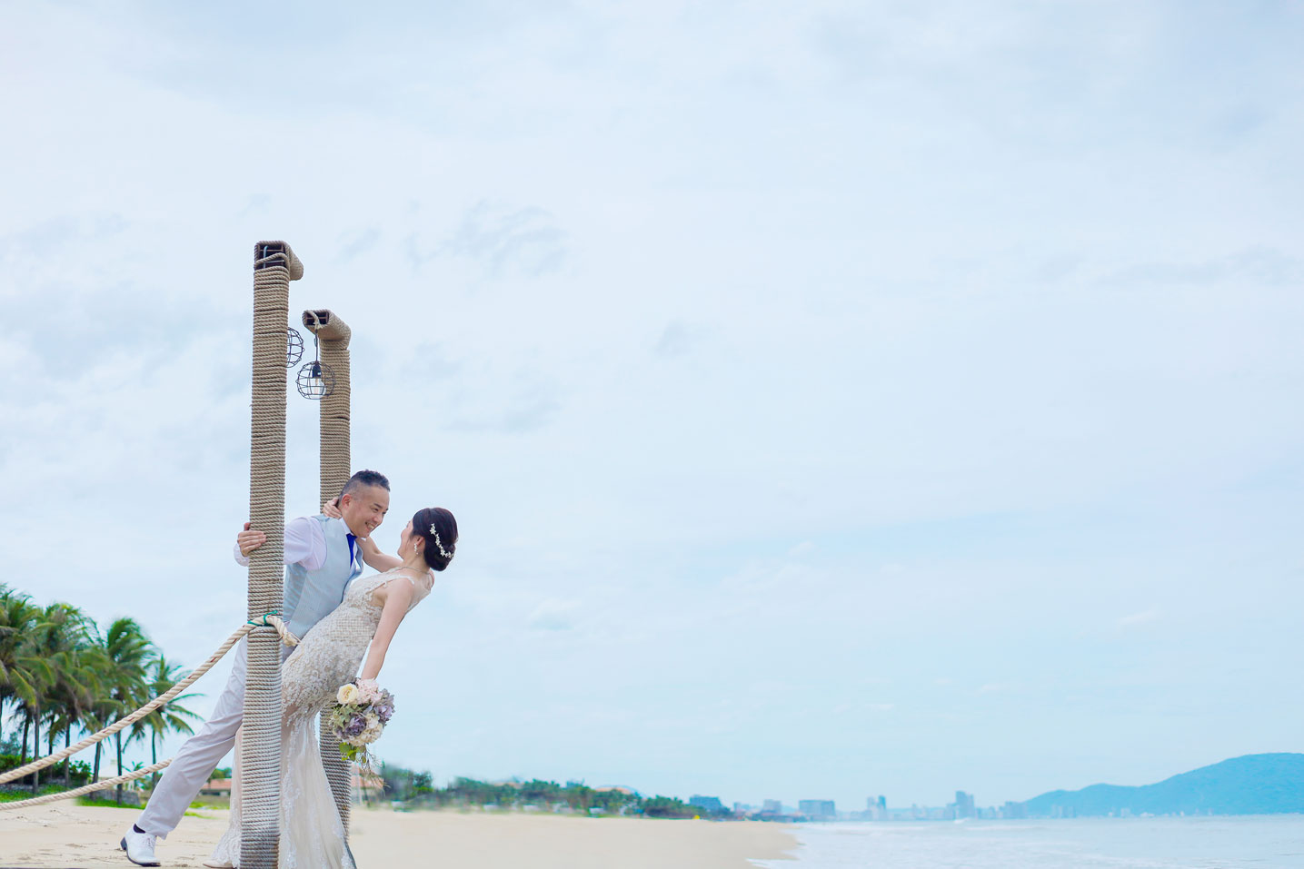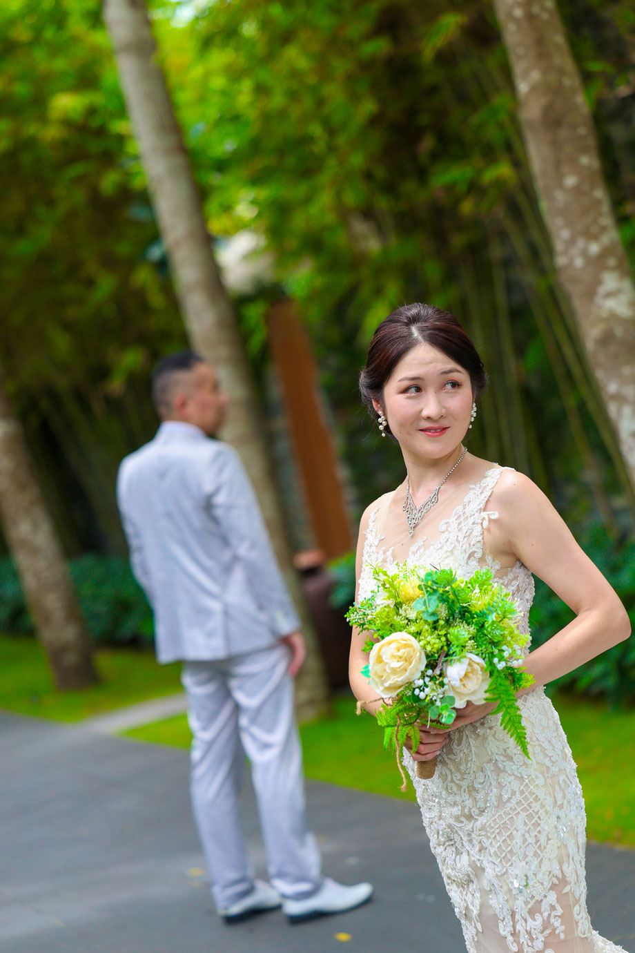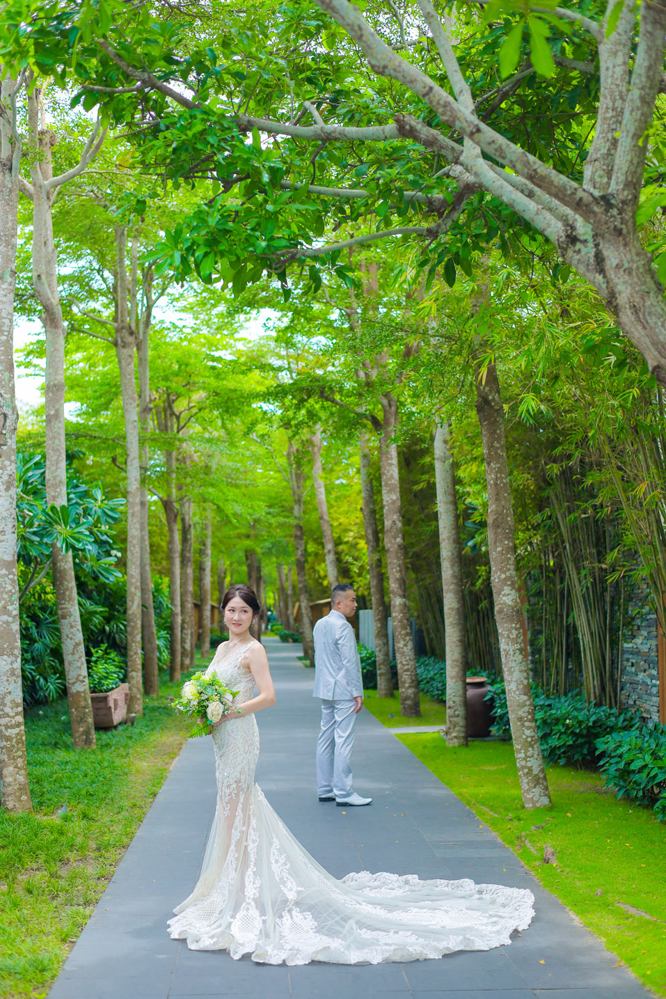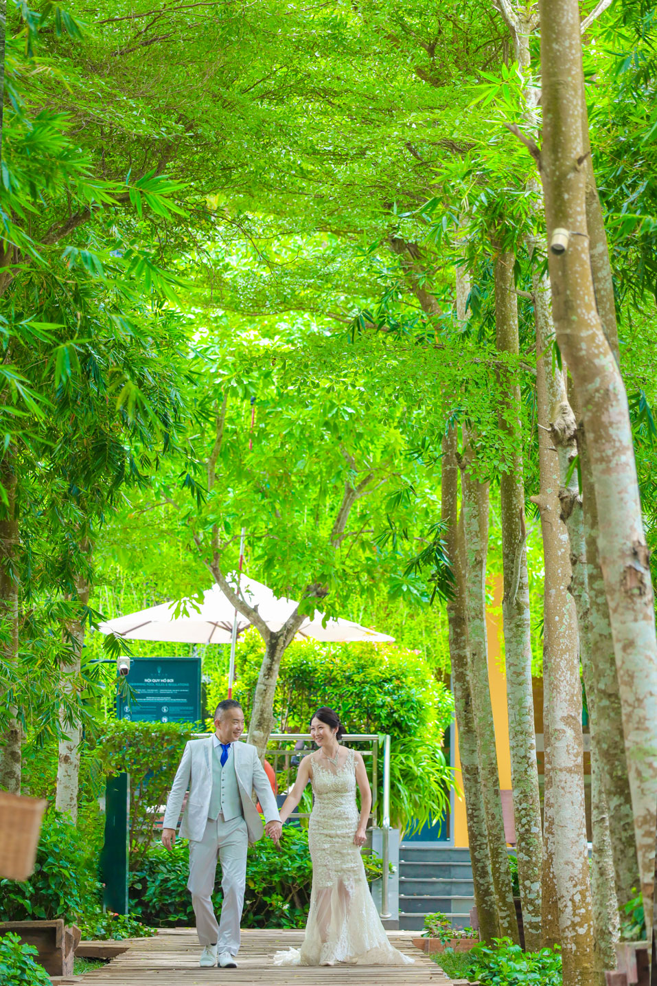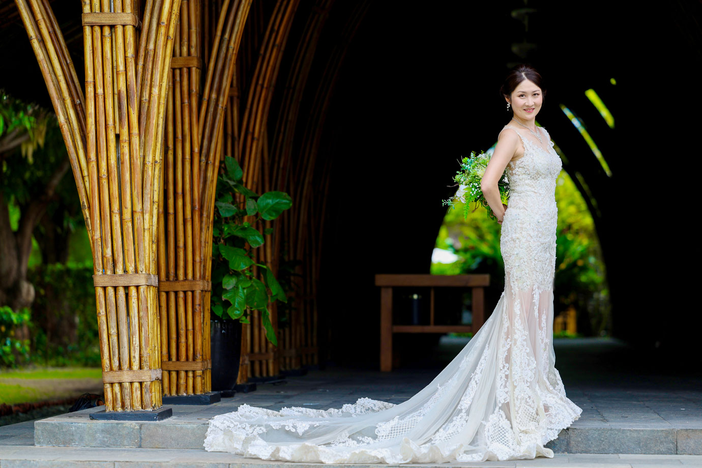 世界的に有名な竹の建築が美しいナマンは、ダナンでも特に人気のリゾートですが、そのダイナミックな空間にお二人の凛とした佇まいが重なり、唯一無二のカットがたくさん生まれました。
