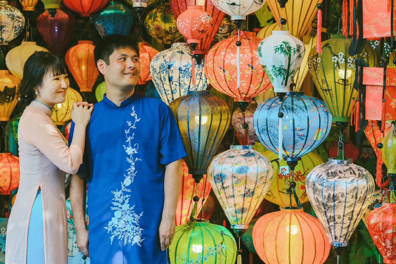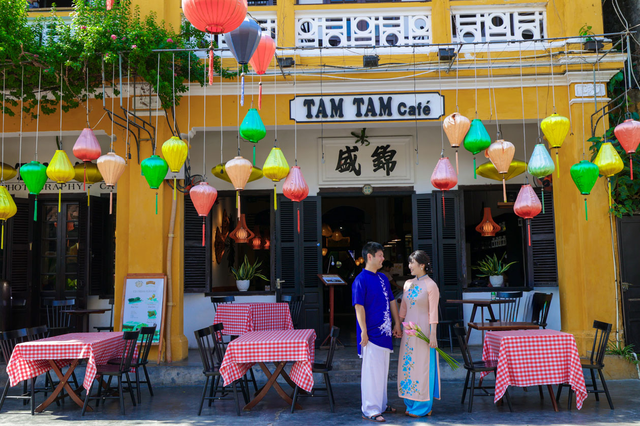 ハイアット リージェンシー ダナン × ホイアン旧市街。都会的な美しさと伝統的な温もりに包まれた、対照的な二つの舞台で、お二人の等身大の笑顔が輝きました。
