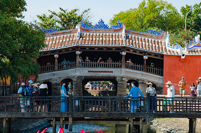 ホイアンの最大の魅力は、なんと言ってもその旧市街が織りなす歴史的な景観です。トゥボン川沿いに広がる旧市街には、15世紀から19世紀にかけて建てられた中国、日本、そしてヨーロッパの建築様式が融合した独特の建物が完璧な状態で保存されています。古い木造家屋、中国式のショップハウス、鮮やかなフレンチコロニアル様式の建物、そして日本の影響を受けた「来遠橋(通称、日本橋)」などが、当時の面影を色濃く残したまま立ち並びます。