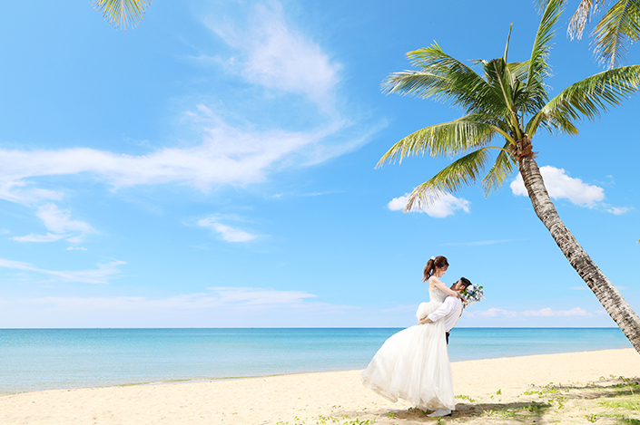フォーブス誌の「世界の魅惑のビーチベスト6」にも選ばれた、その美しさで世界的に有名なビーチです。特に乾季には、透き通るようなエメラルドグリーンの海と真っ白な砂浜が広がり、純白のウェディングドレスが驚くほど美しく映えます。広々とした開放的な空間で、自然体のお二人を捉えた爽やかな写真を残したいカップルに最適です。