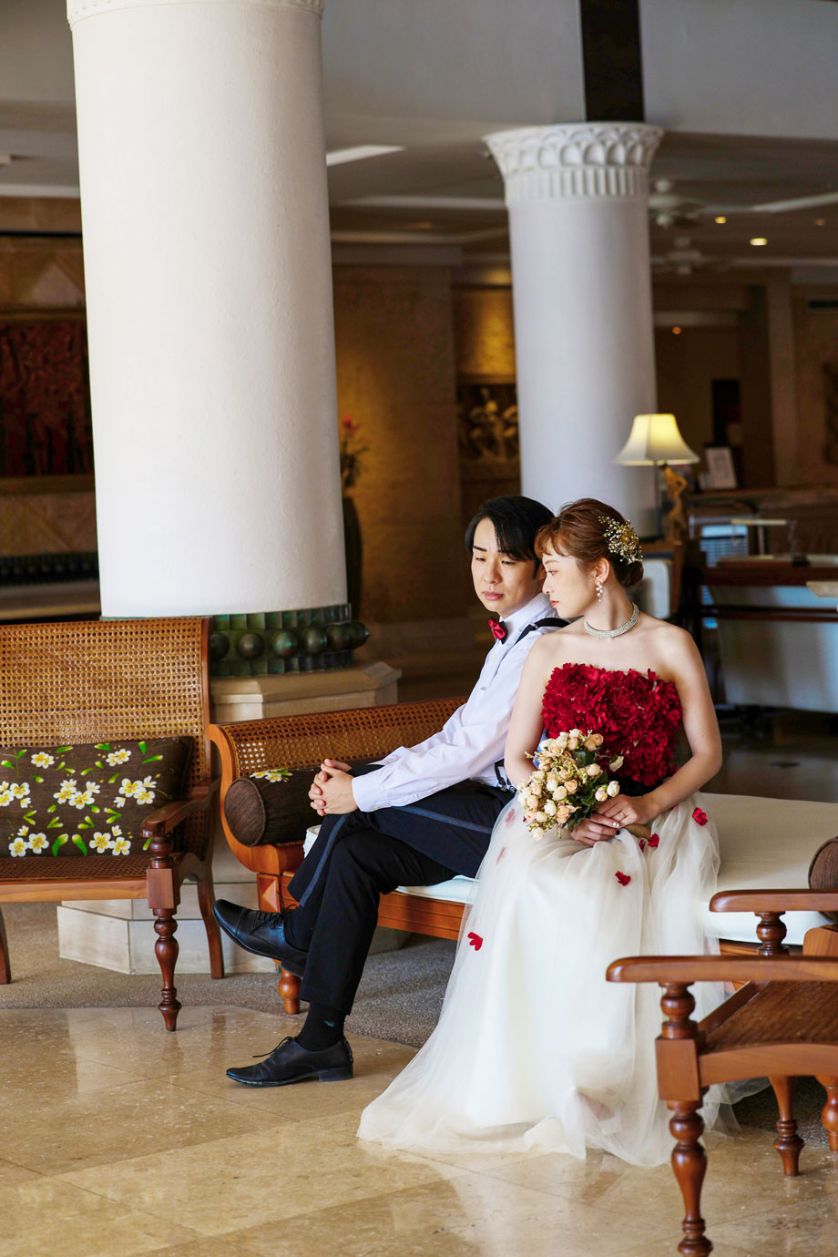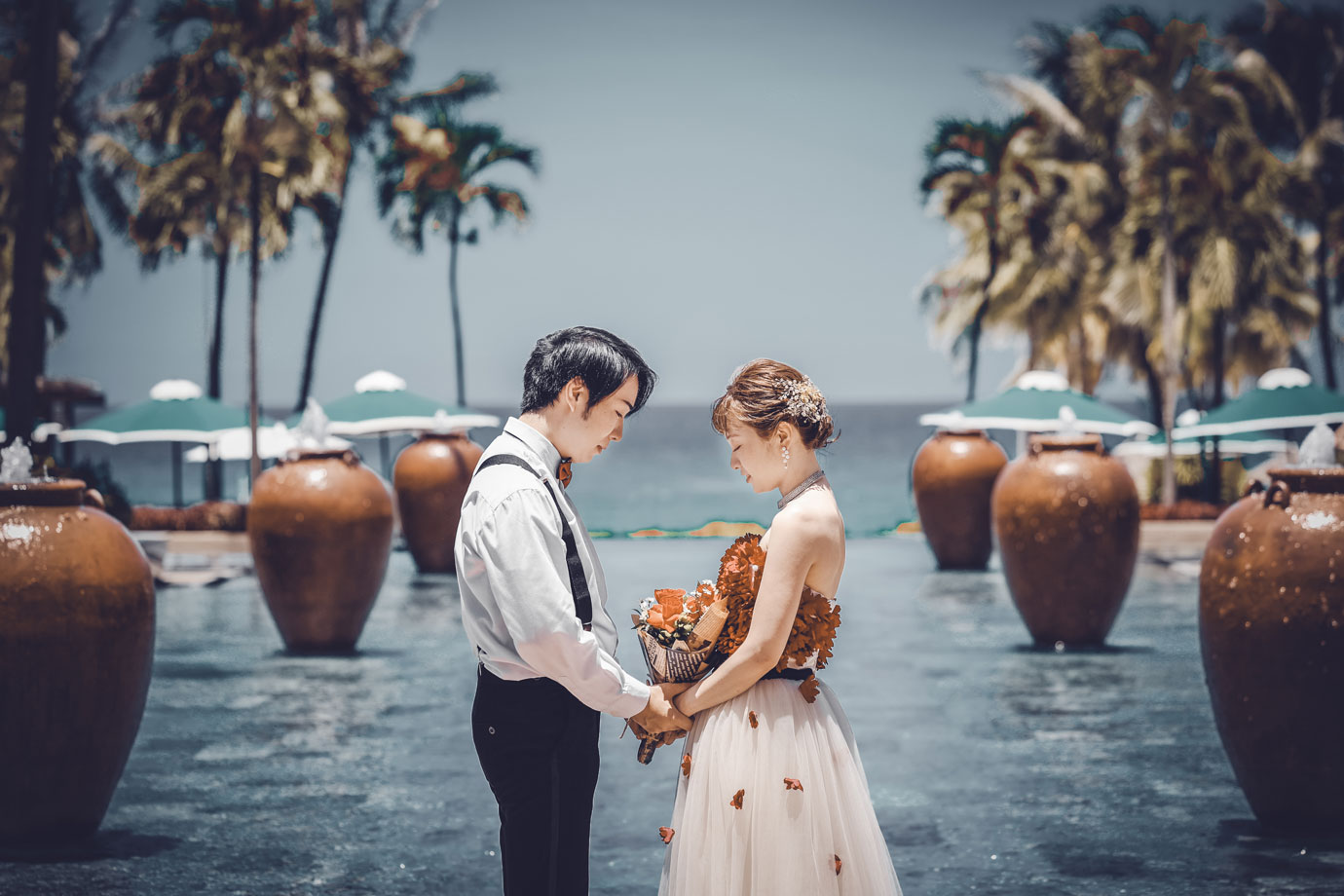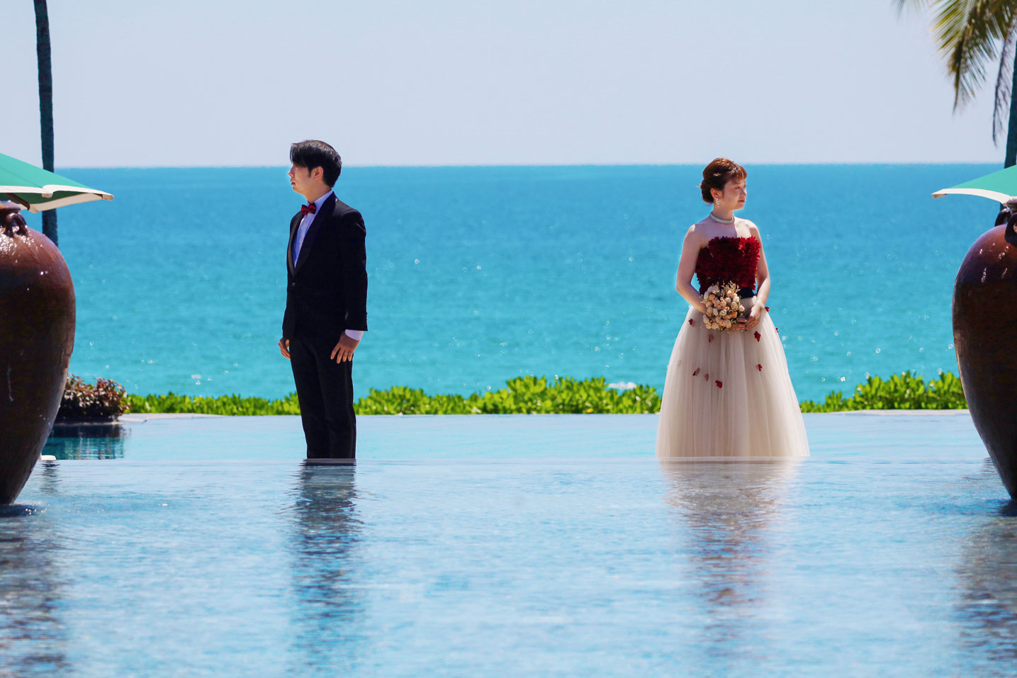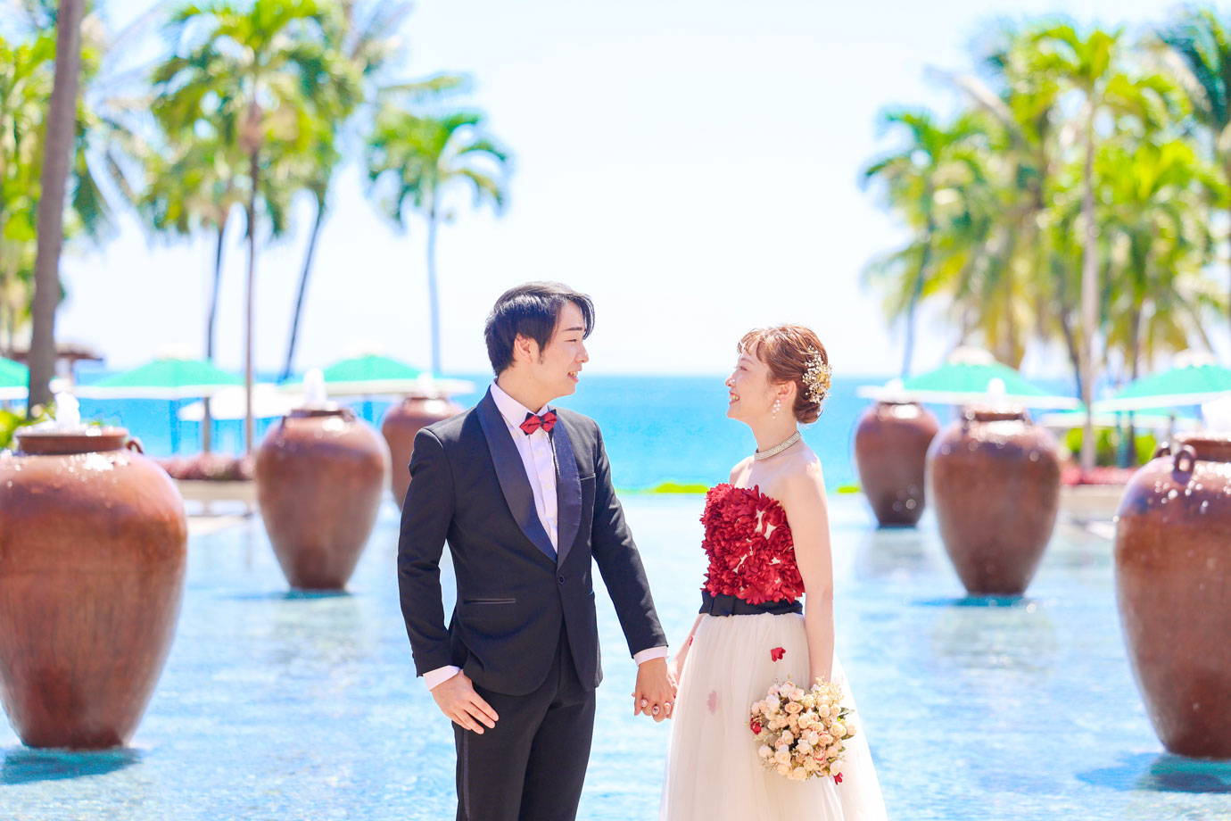 フラマリゾートの静寂で美しいロケーションがお二人の凛とした美しさを引き立てていました。心からリラックスされた柔らかな表情が、お写真からも溢れ出しています。