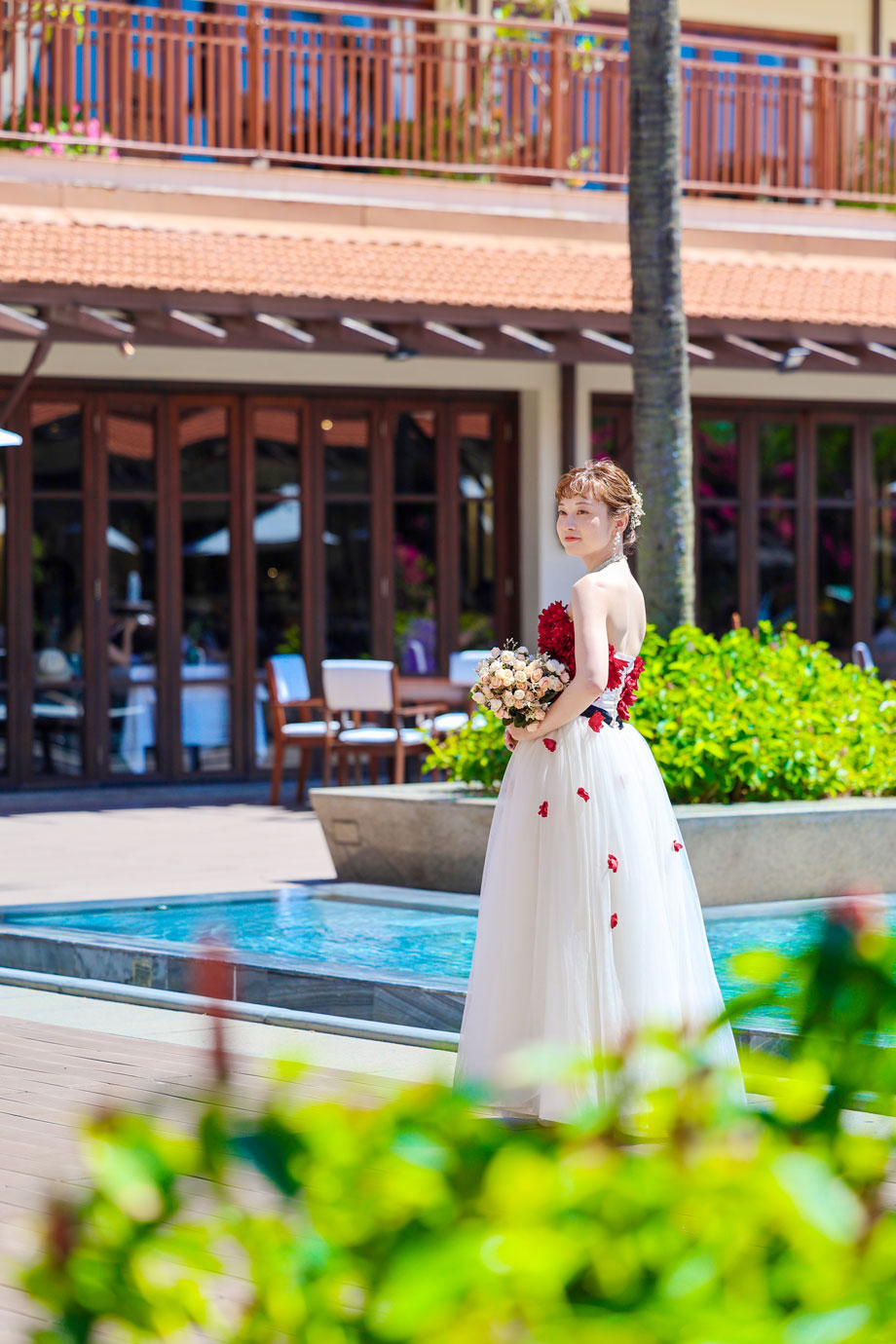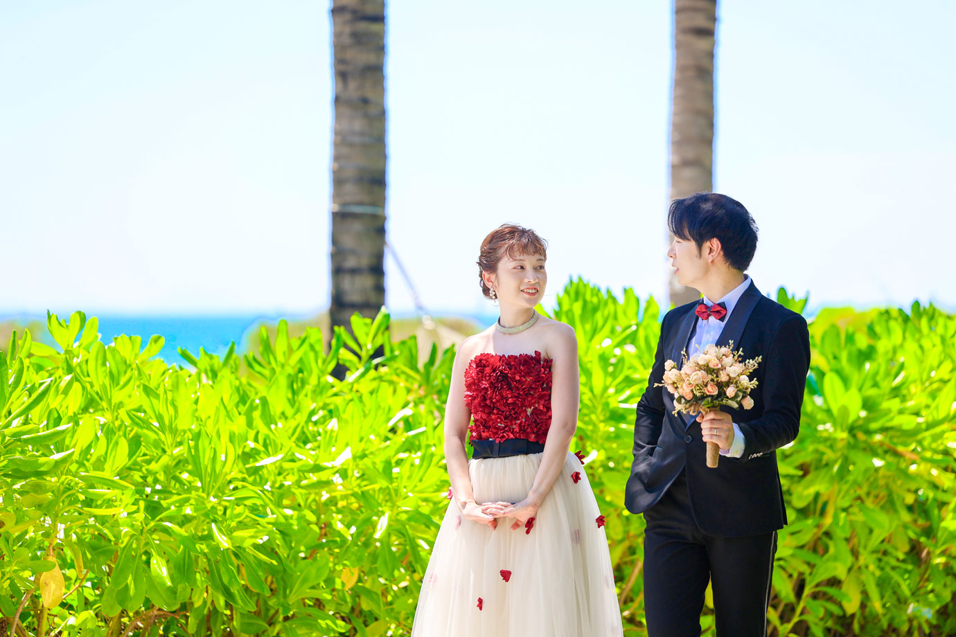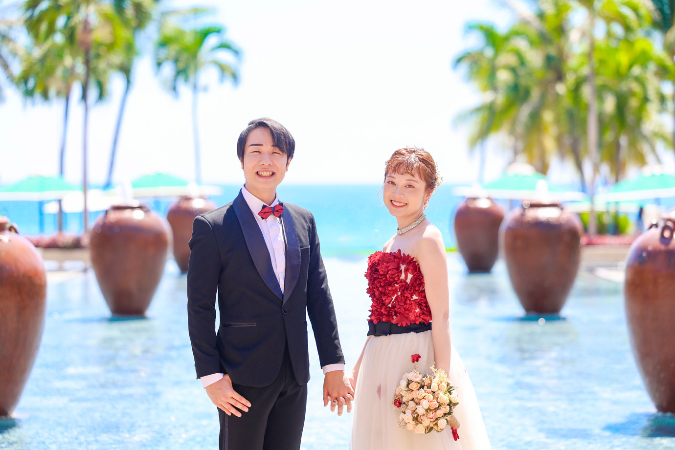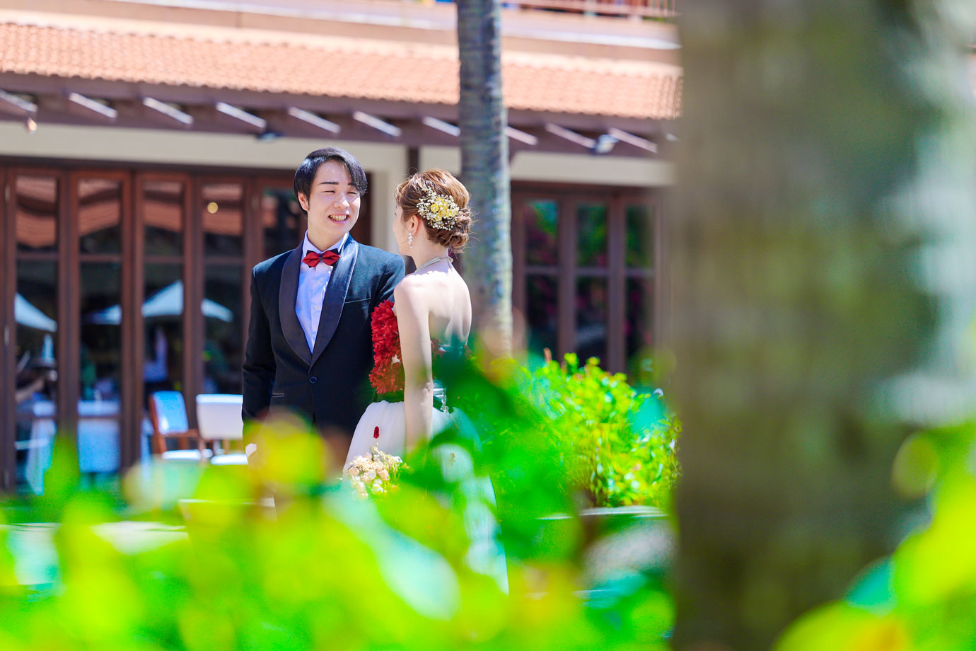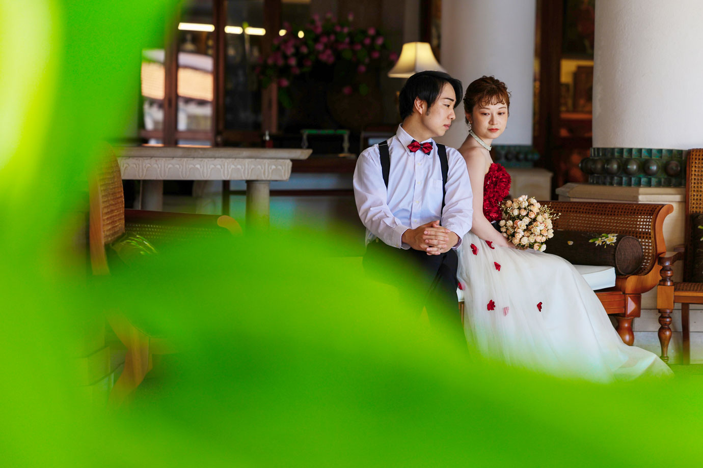 フラマリゾートの静寂で美しいロケーションがお二人の凛とした美しさを引き立てていました。心からリラックスされた柔らかな表情が、お写真からも溢れ出しています。