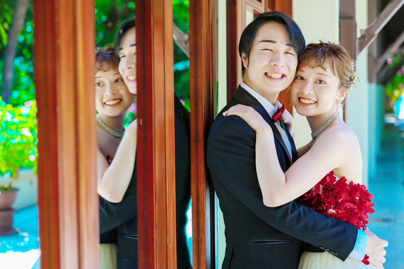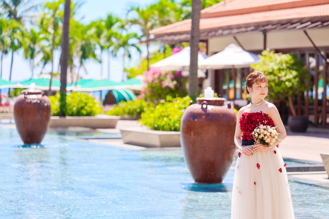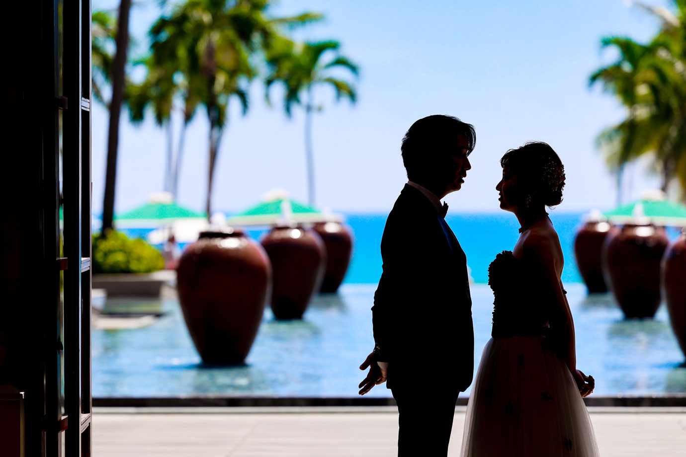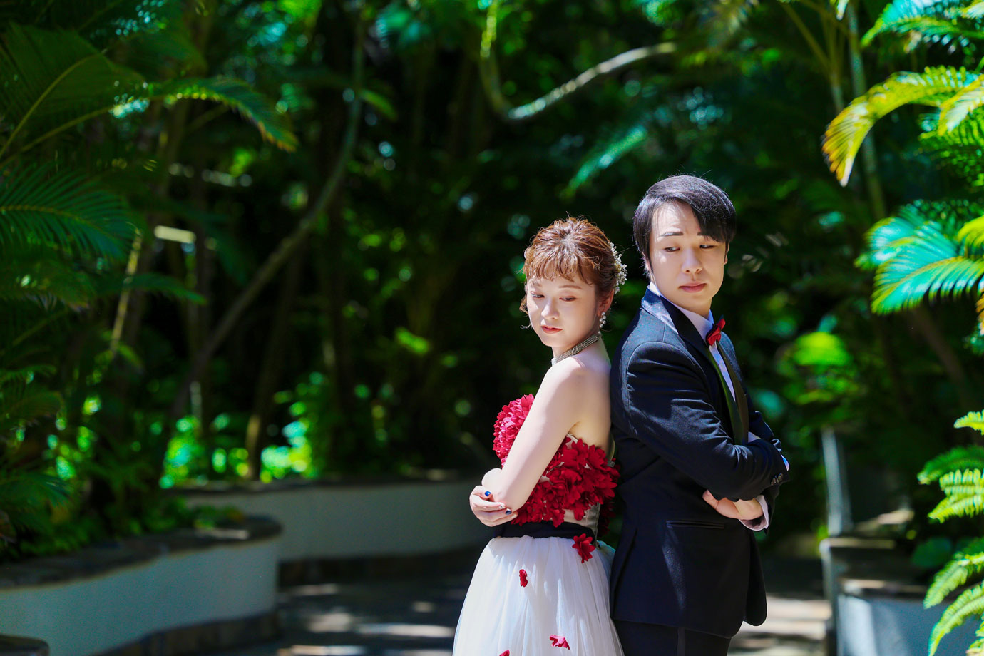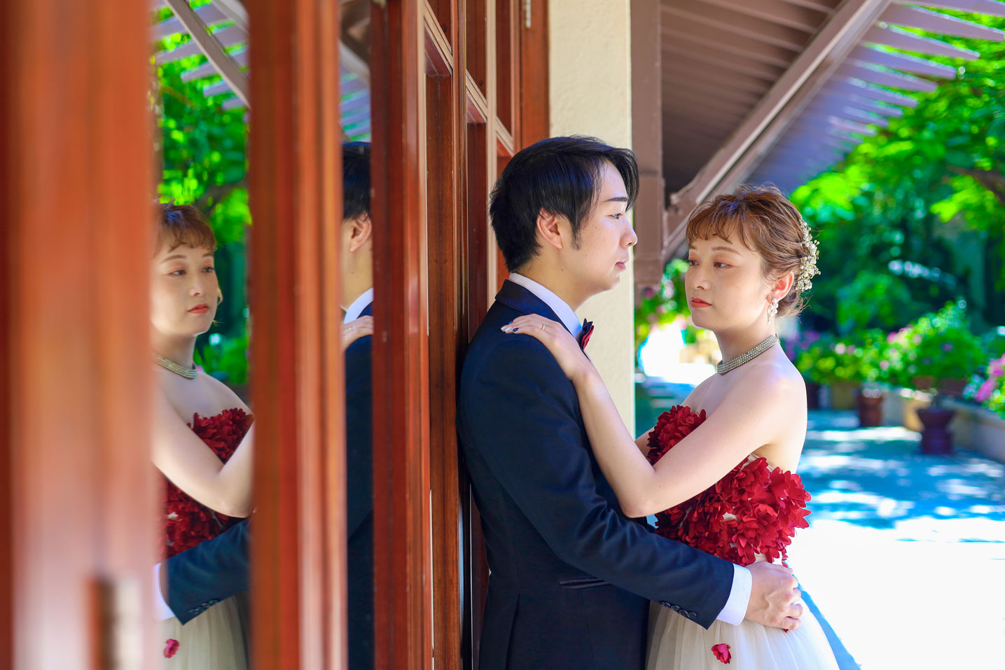 フラマリゾートの静寂で美しいロケーションがお二人の凛とした美しさを引き立てていました。心からリラックスされた柔らかな表情が、お写真からも溢れ出しています。