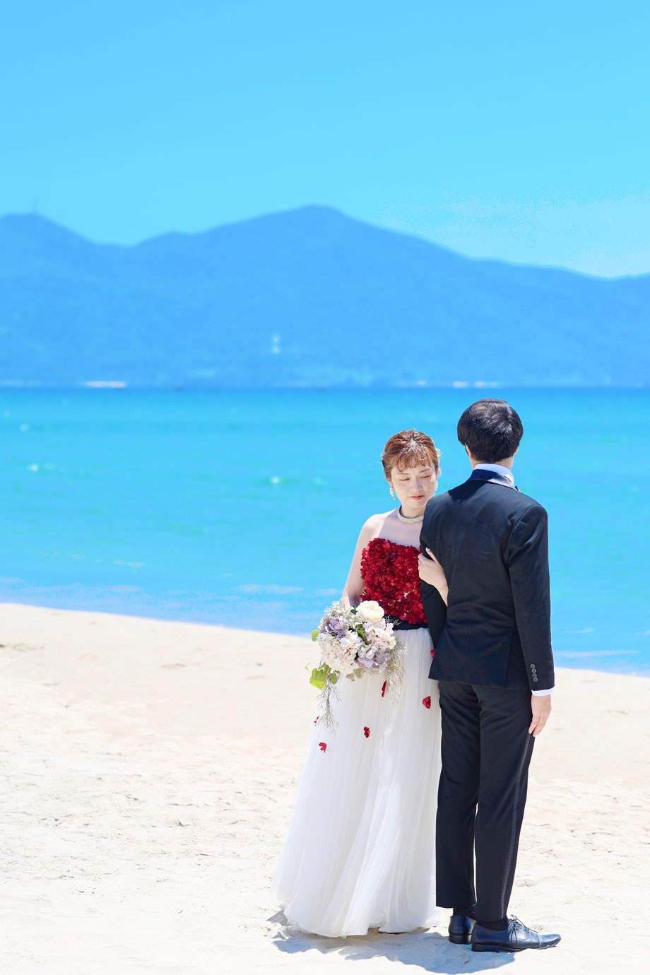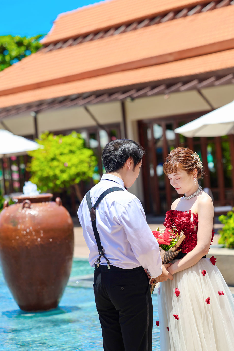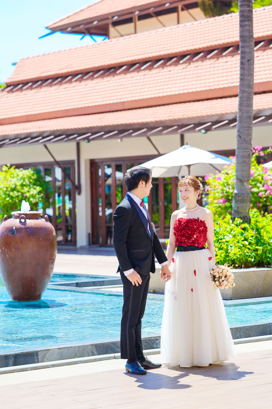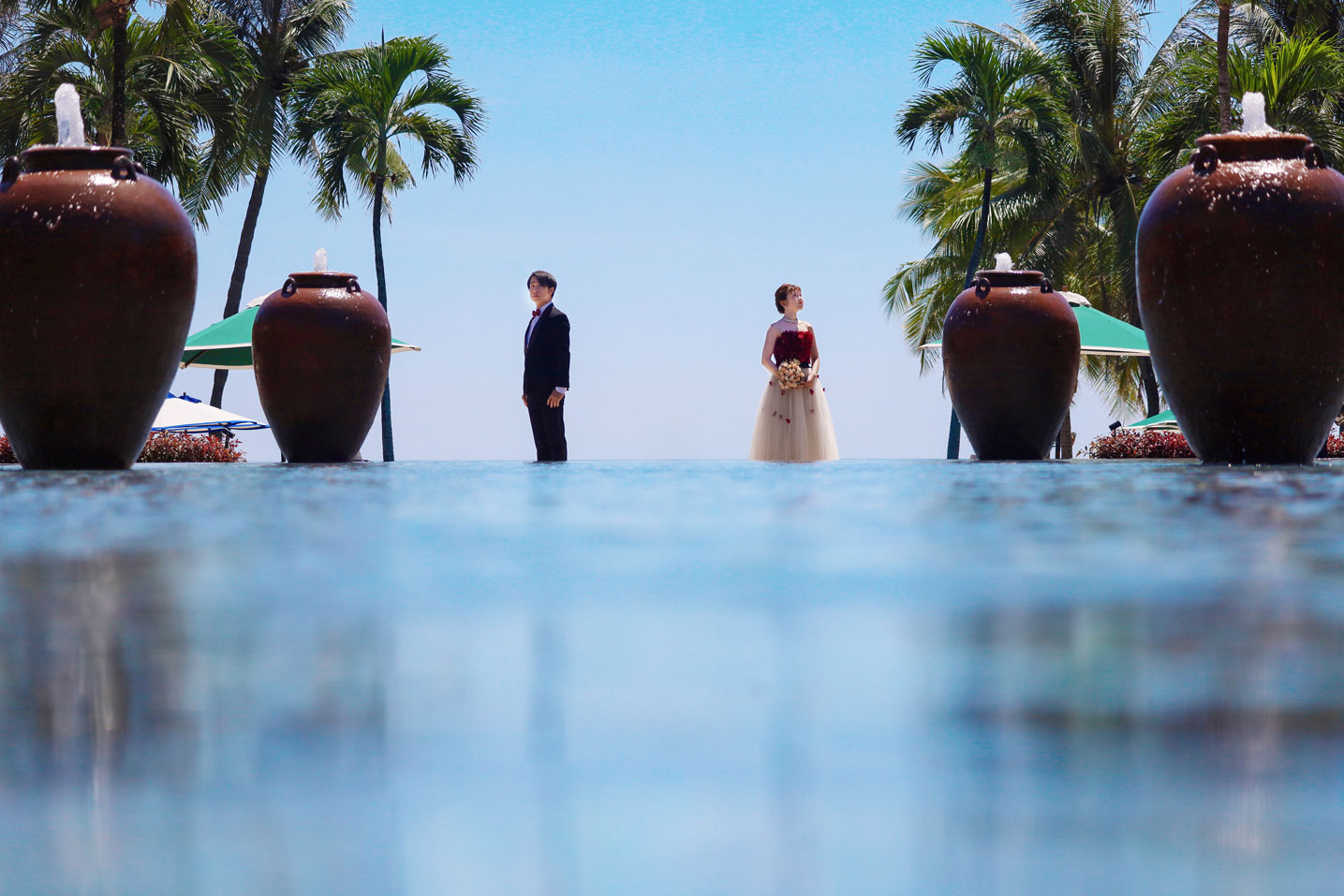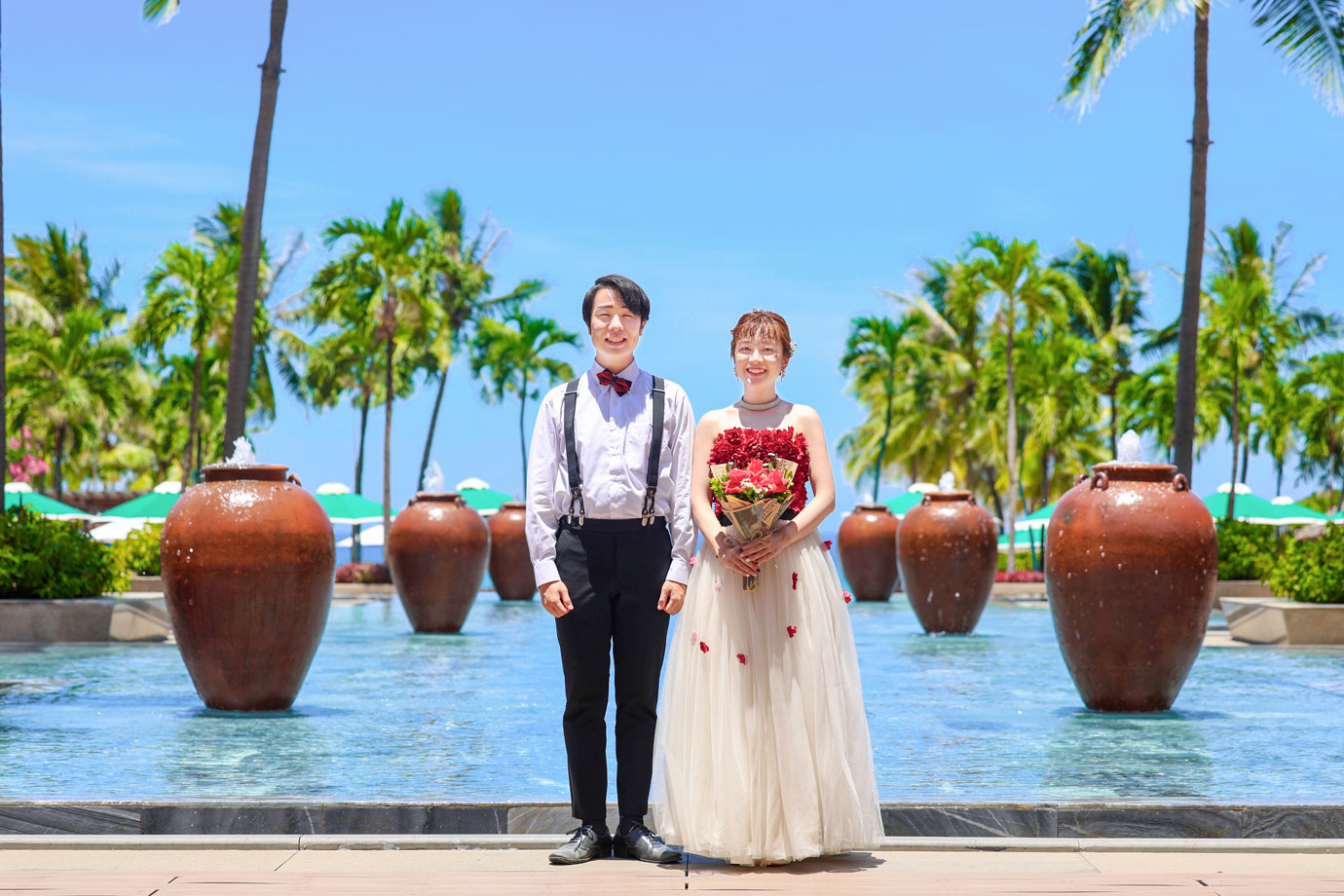 フラマリゾートの静寂で美しいロケーションがお二人の凛とした美しさを引き立てていました。心からリラックスされた柔らかな表情が、お写真からも溢れ出しています。