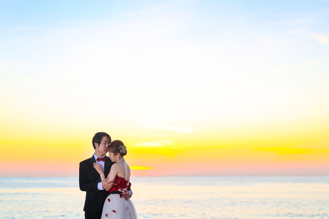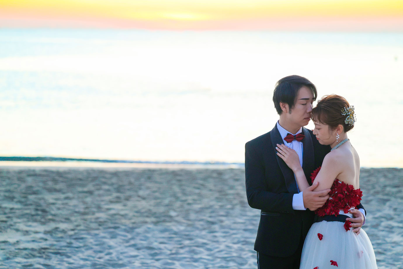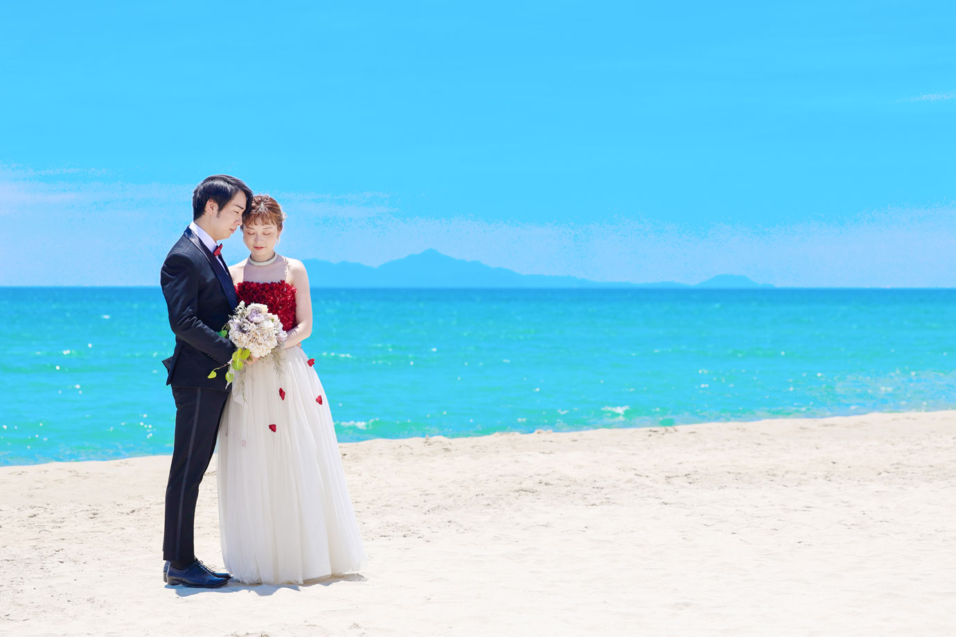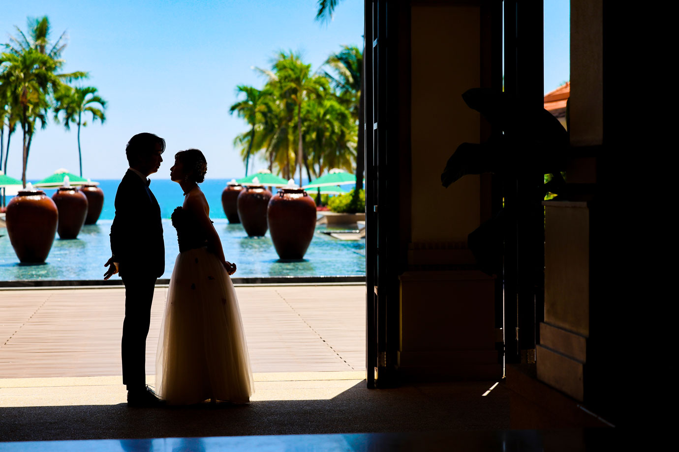 フラマリゾートの静寂で美しいロケーションがお二人の凛とした美しさを引き立てていました。心からリラックスされた柔らかな表情が、お写真からも溢れ出しています。