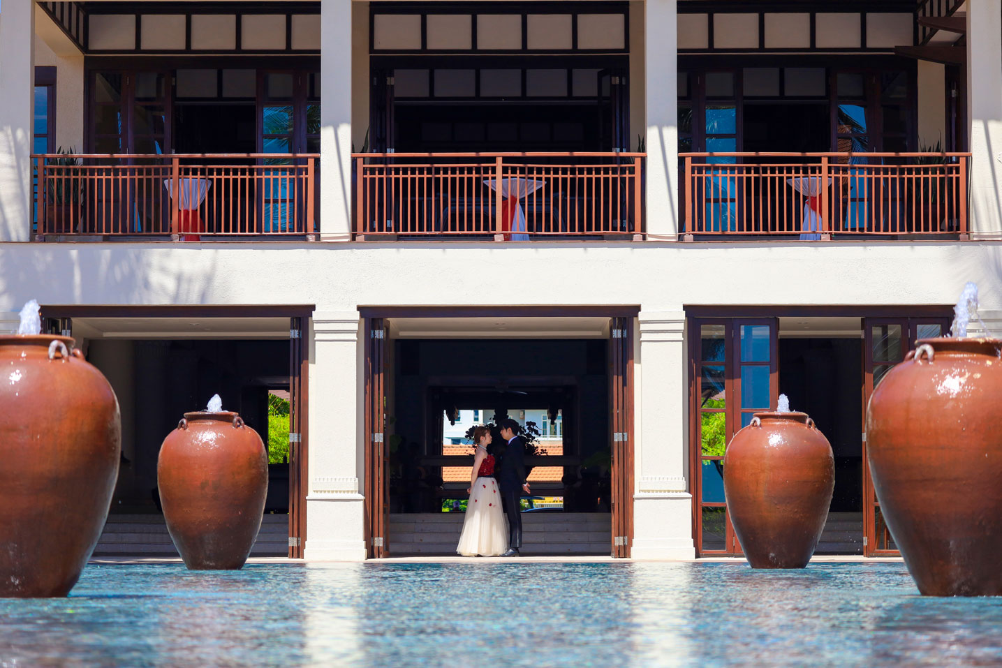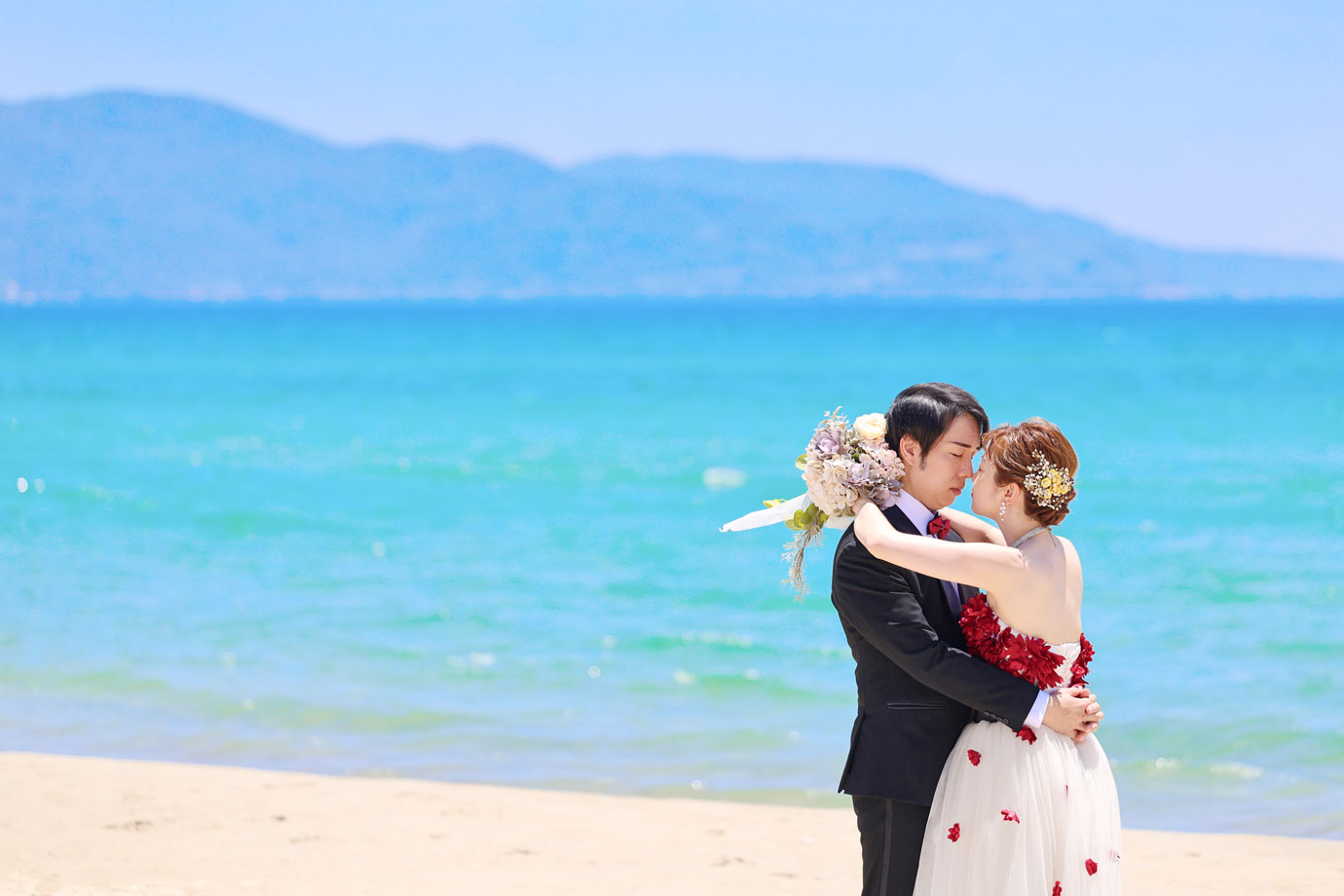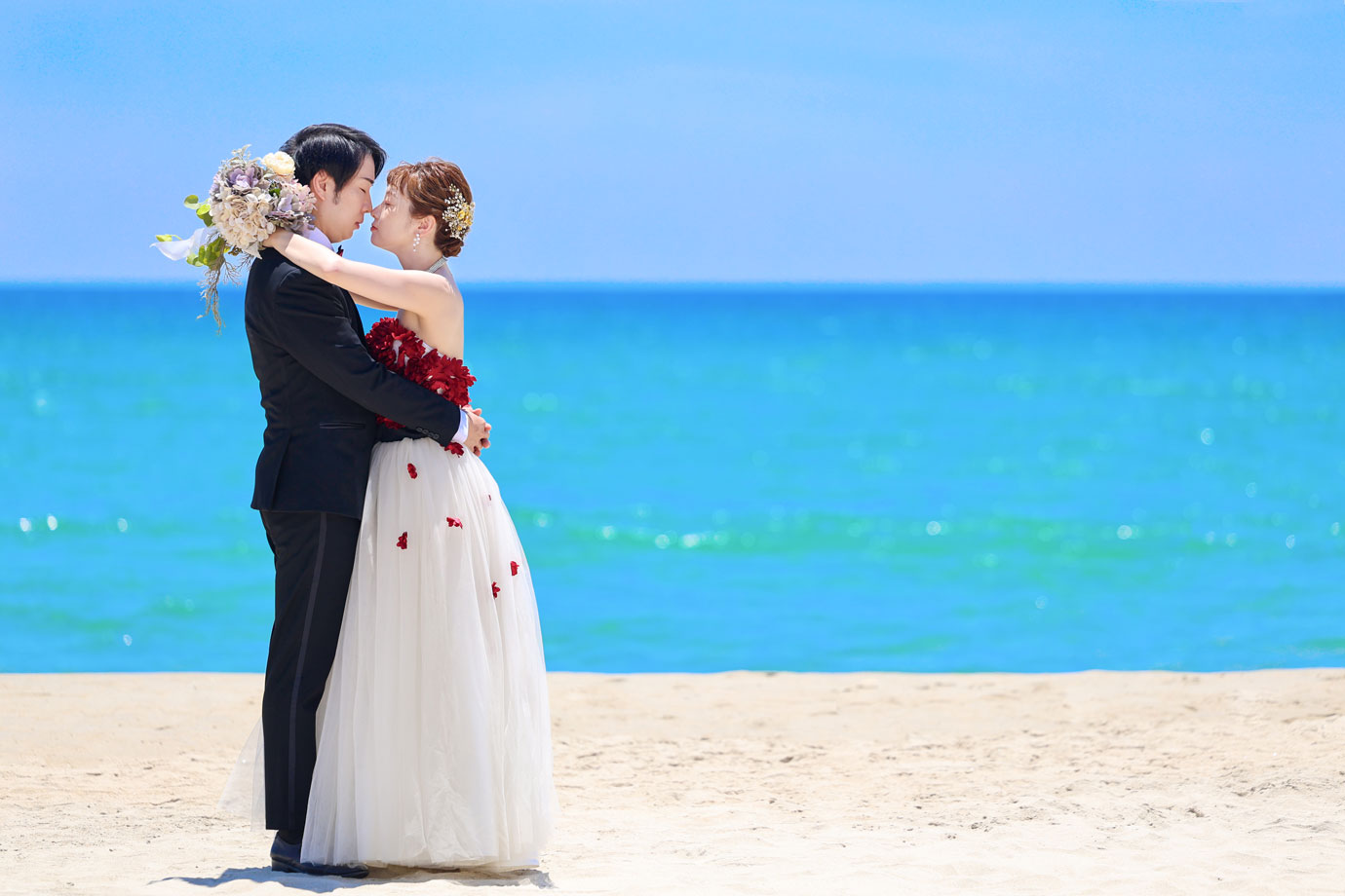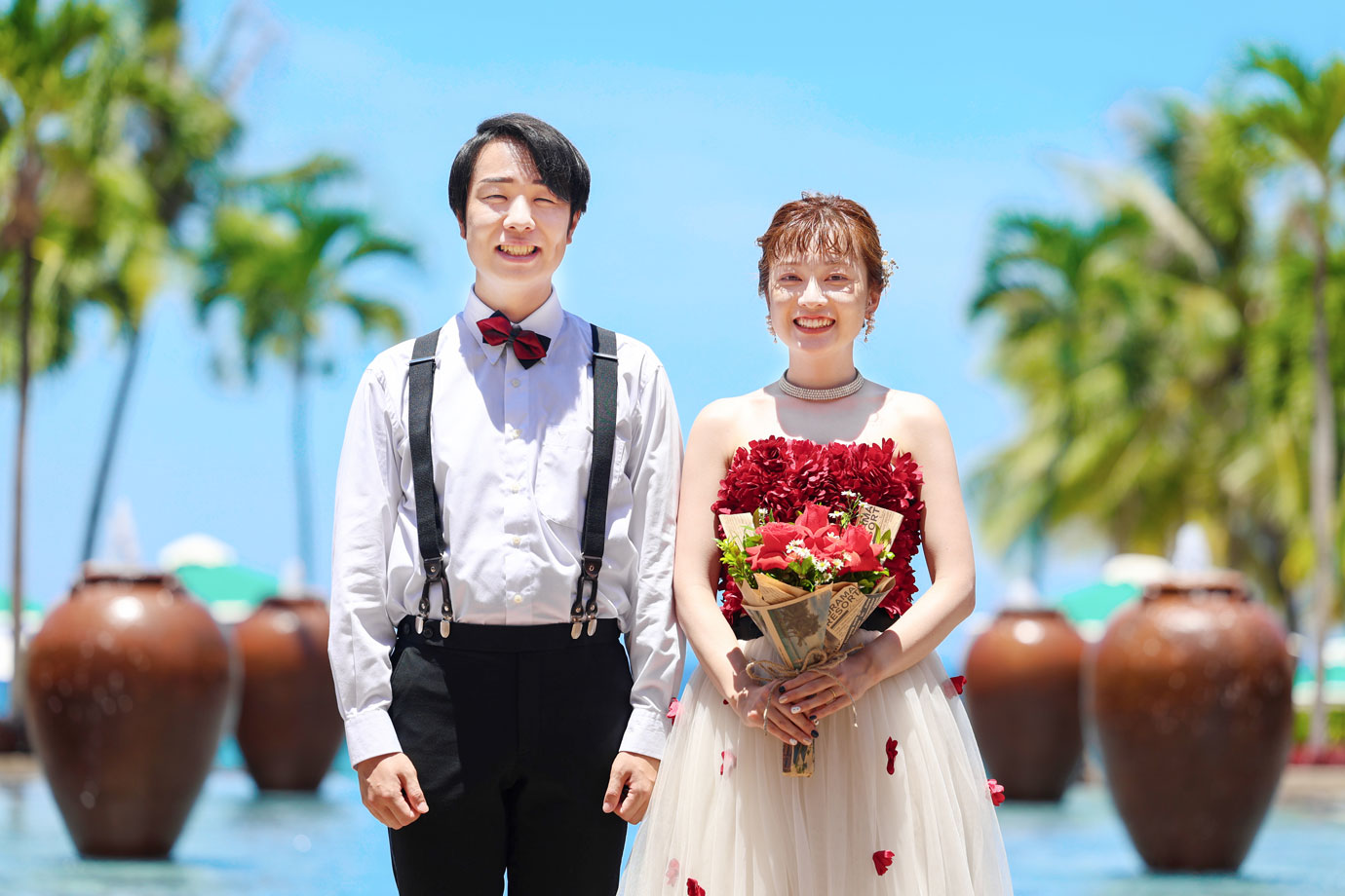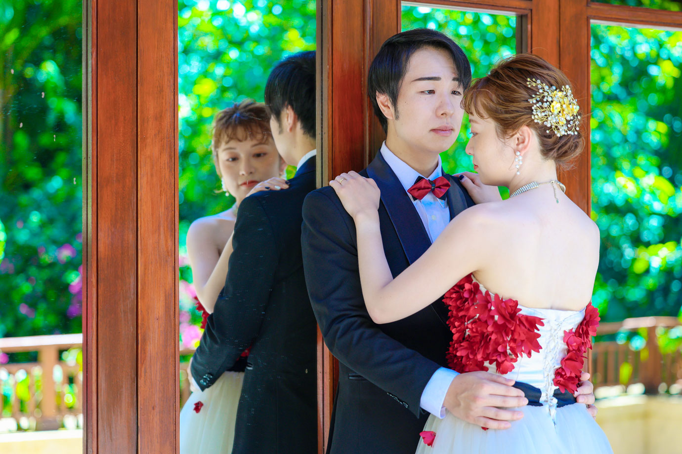 フラマリゾートの静寂で美しいロケーションがお二人の凛とした美しさを引き立てていました。心からリラックスされた柔らかな表情が、お写真からも溢れ出しています。