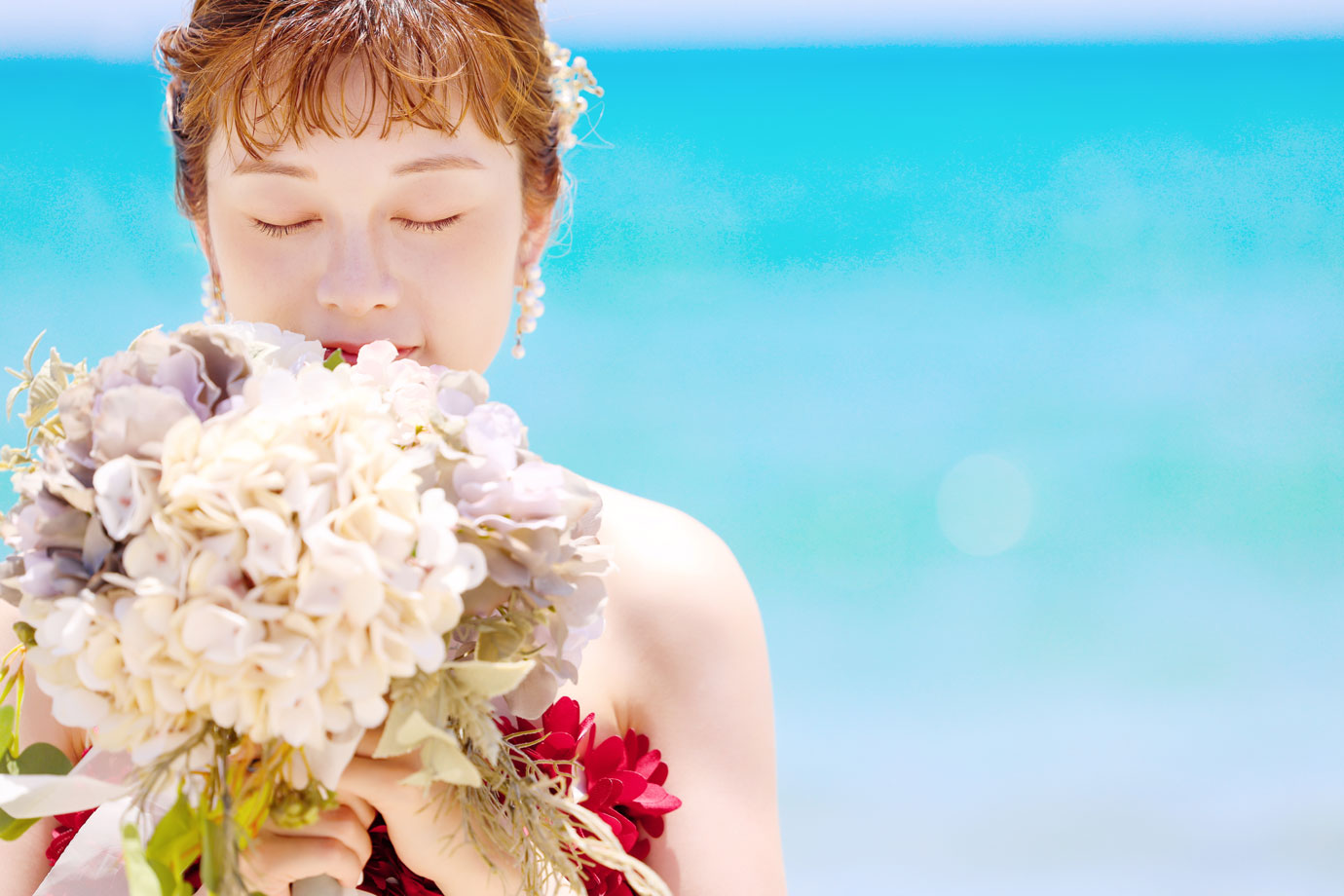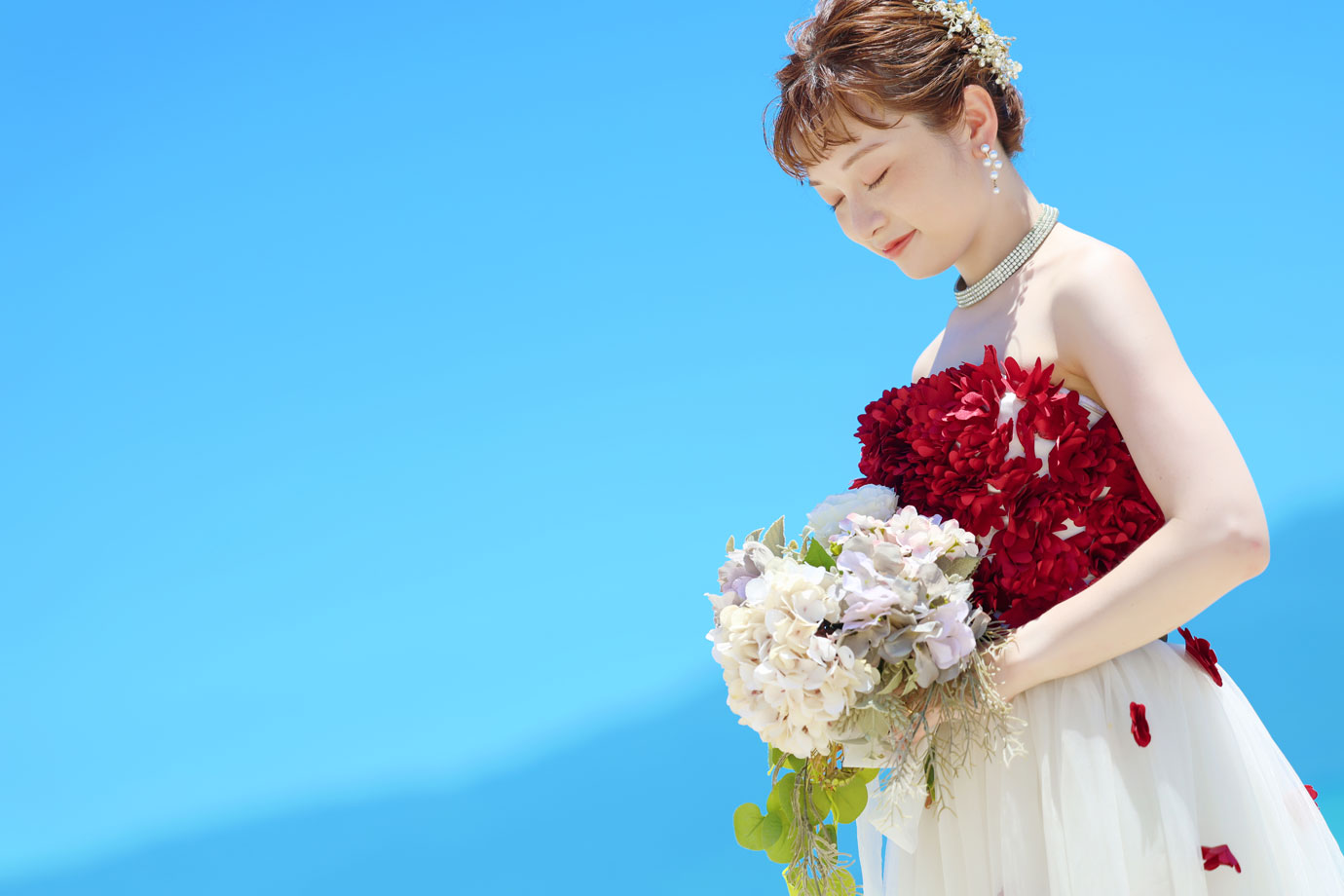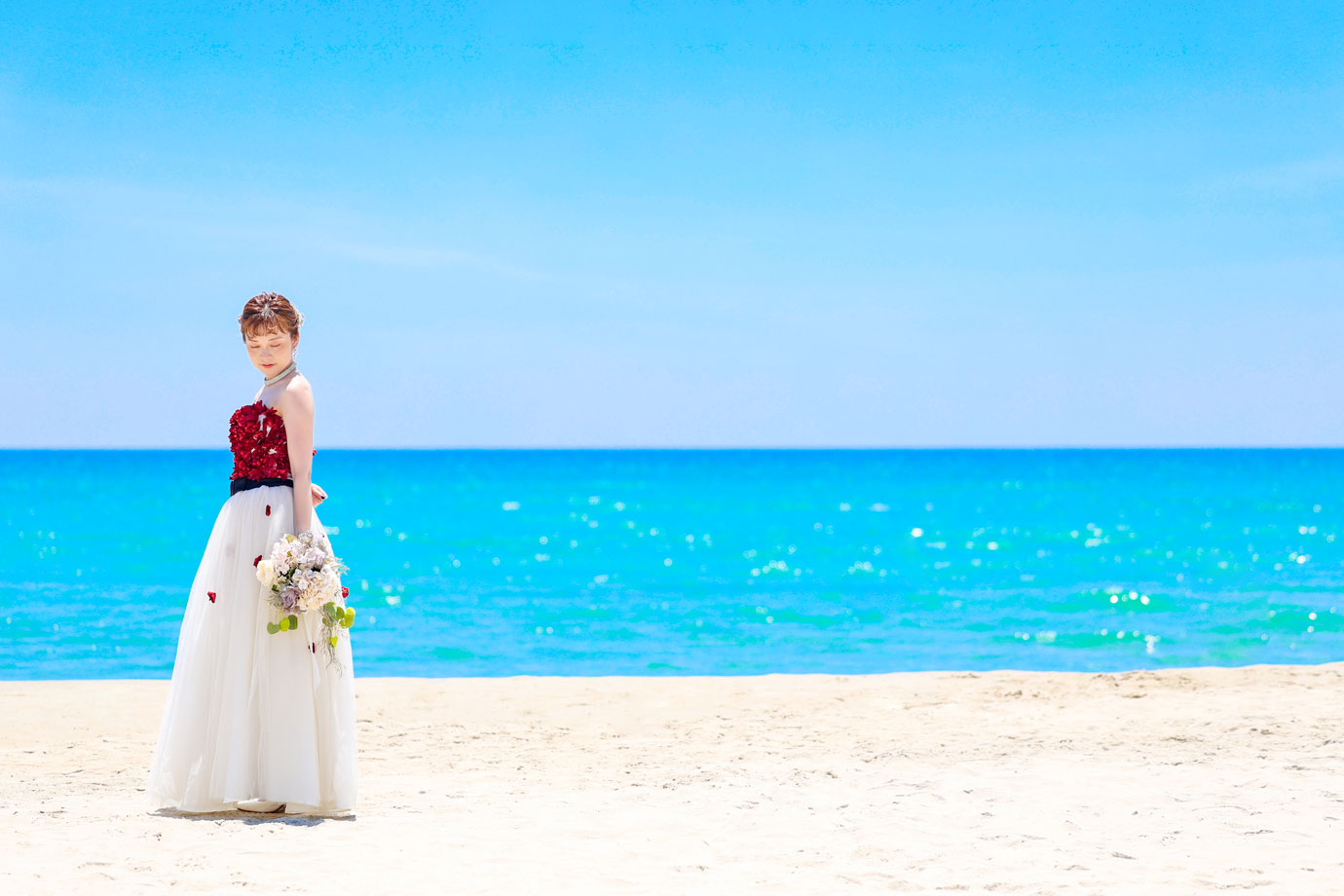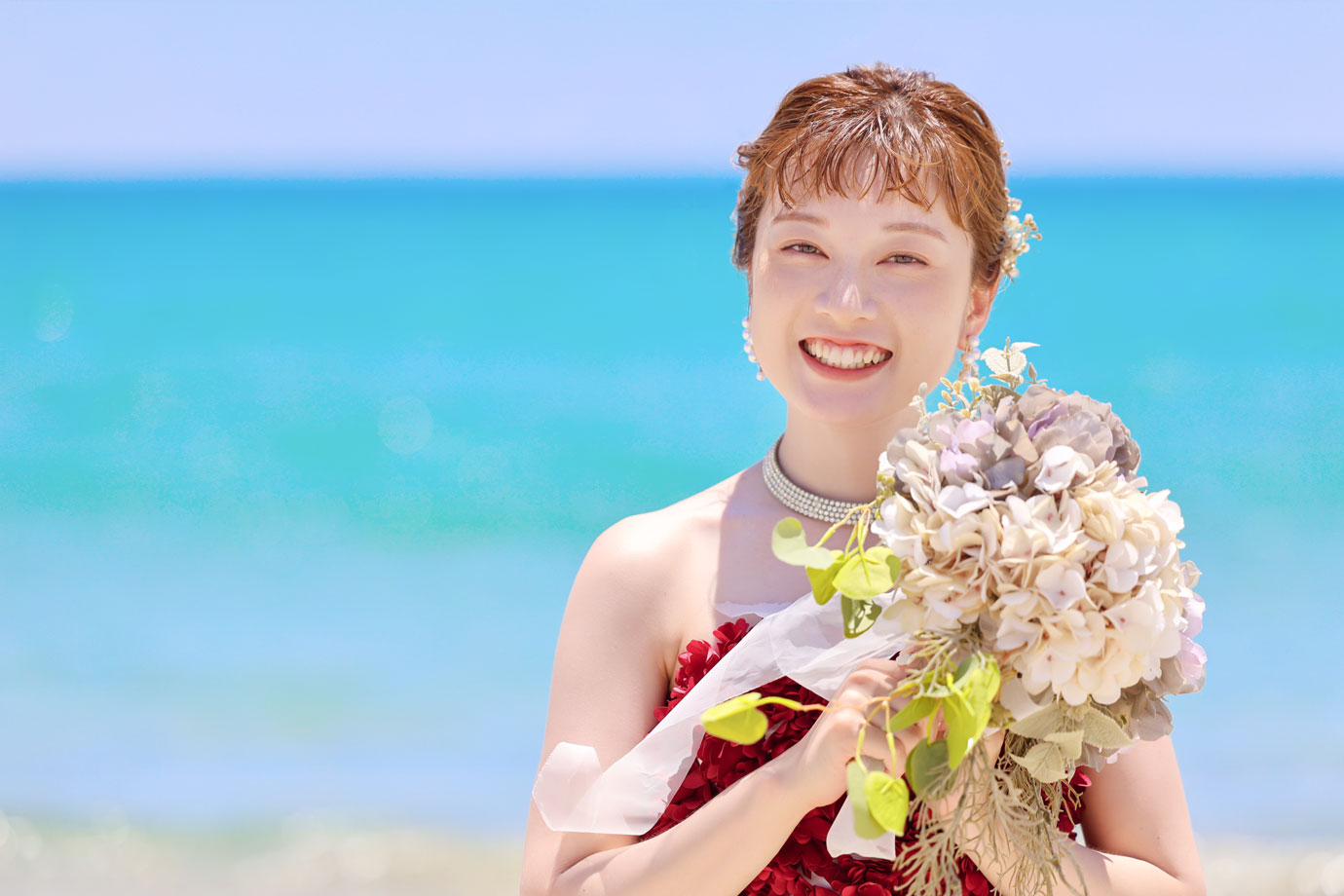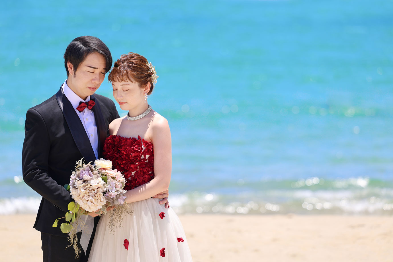フラマリゾートの静寂で美しいロケーションがお二人の凛とした美しさを引き立てていました。心からリラックスされた柔らかな表情が、お写真からも溢れ出しています。