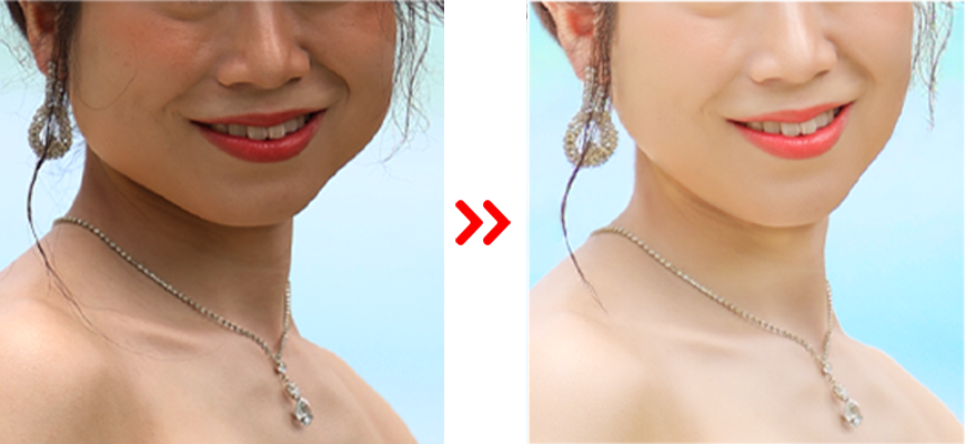 ポーズによって、アゴのラインがたるんだり、シワが寄ったりしますので、その場合のみフェイスラインを修整します。