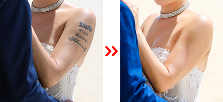 こぶし程度の大きさのタトゥー等であれば、無料で修整します。