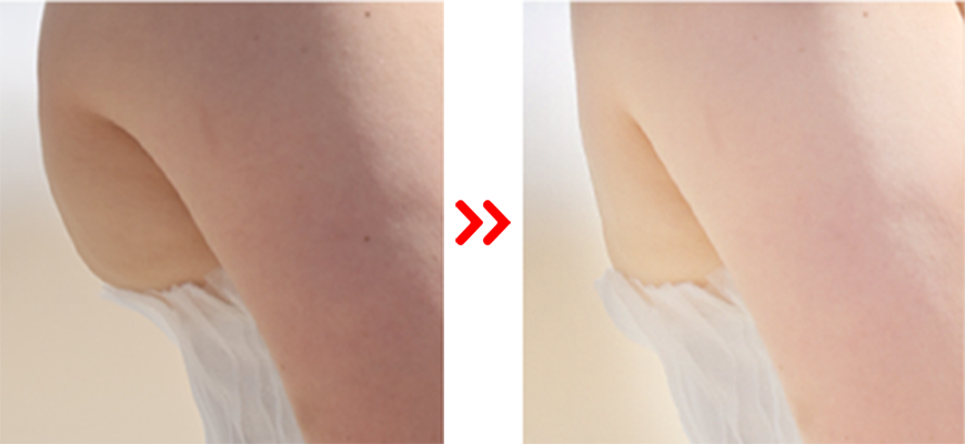 脇のくすみが目立つ場合は、キレイな肌の色に補整します。