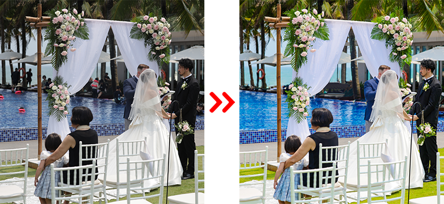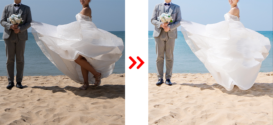 ビーチやホテル敷地内で撮影した画像は、ごみやお二人以外の人物を消去します。