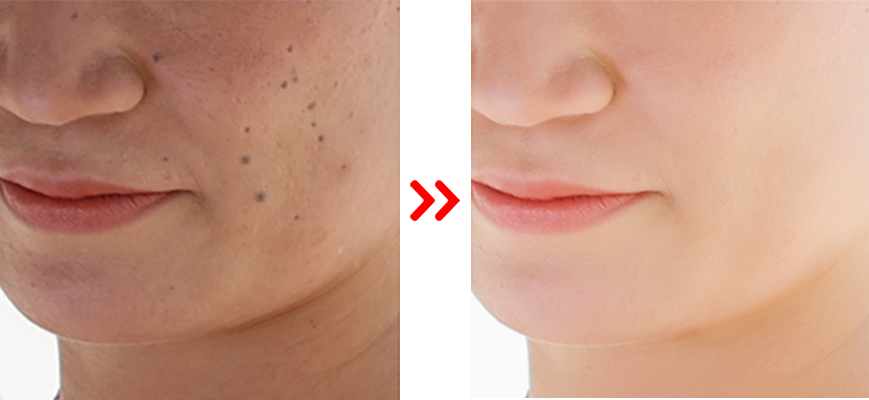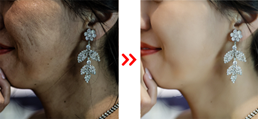 アザやニキビ等気になる箇所を消去し、お肌がキレイに見えるよう修整します。